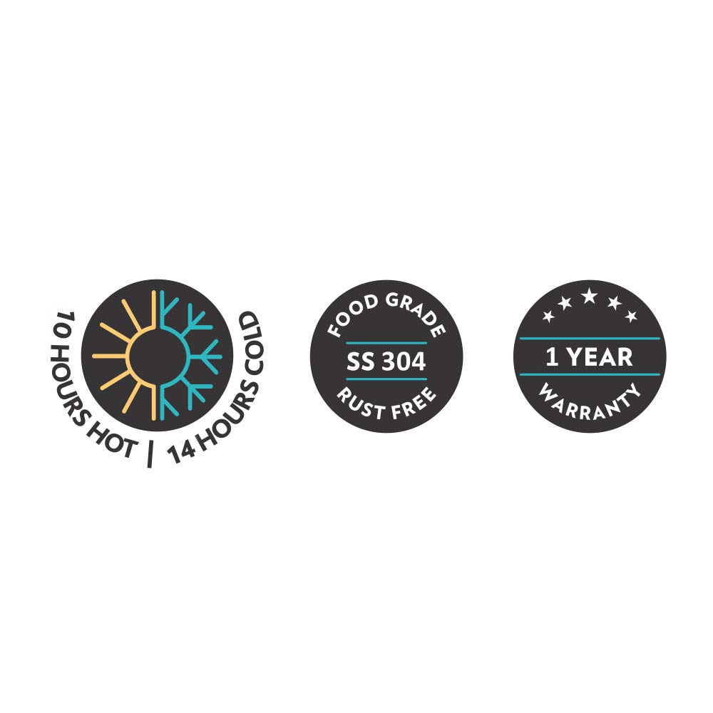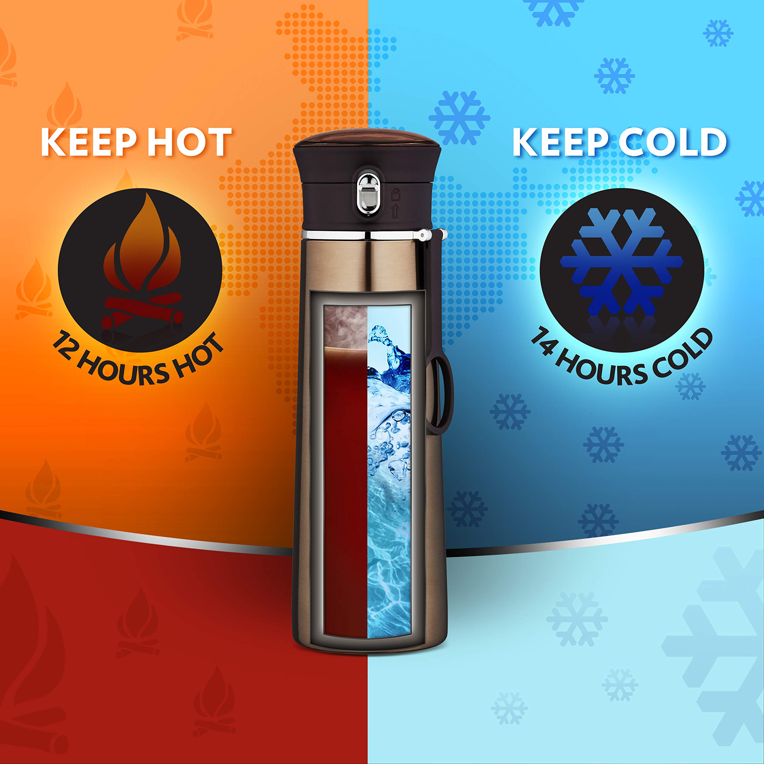 12 Hours HOT & 14 Hours COLD- Keeps your drink hot for 12 hours and cold for 14 hours straight. Sip healthy with our BPA-free water bottles that are made with non-toxic materials. With our reusable water bottle staying hydrated all day long just got easie