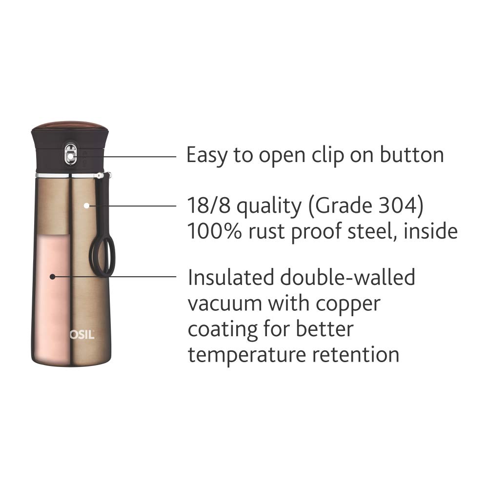 COPPER COATED DOUBLE-WALL VACUUM INSULATION - The double wall vacuum insulation of the water bottle maintains the temperature of inside contents for hours and prevents condensation from forming on the bottles exterior.
