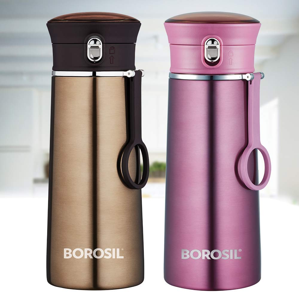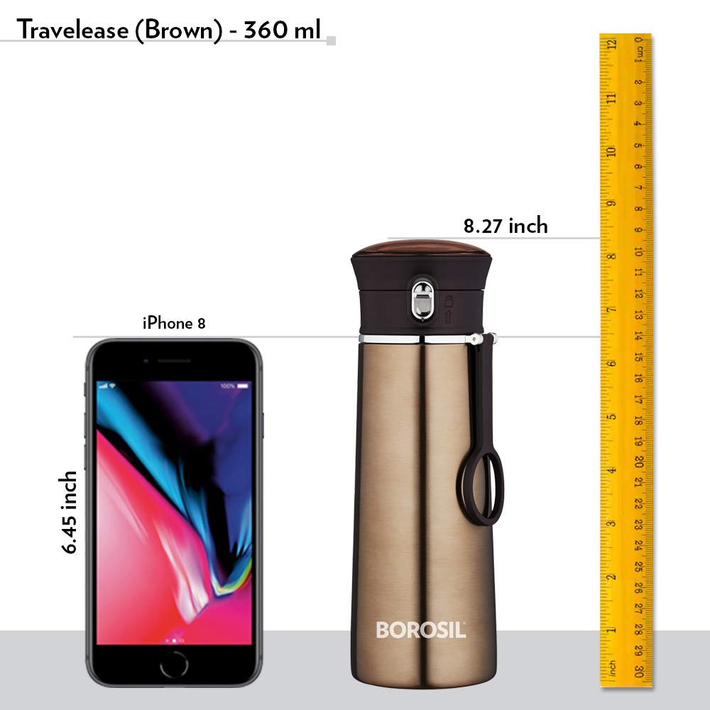 Borosil Stainless Steel Hydra - Vacuum Insulated Flask Water Bottle 360 ML Brown