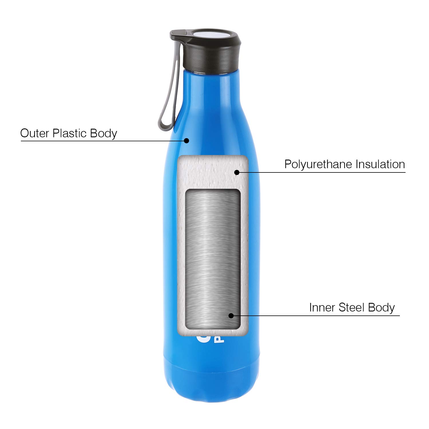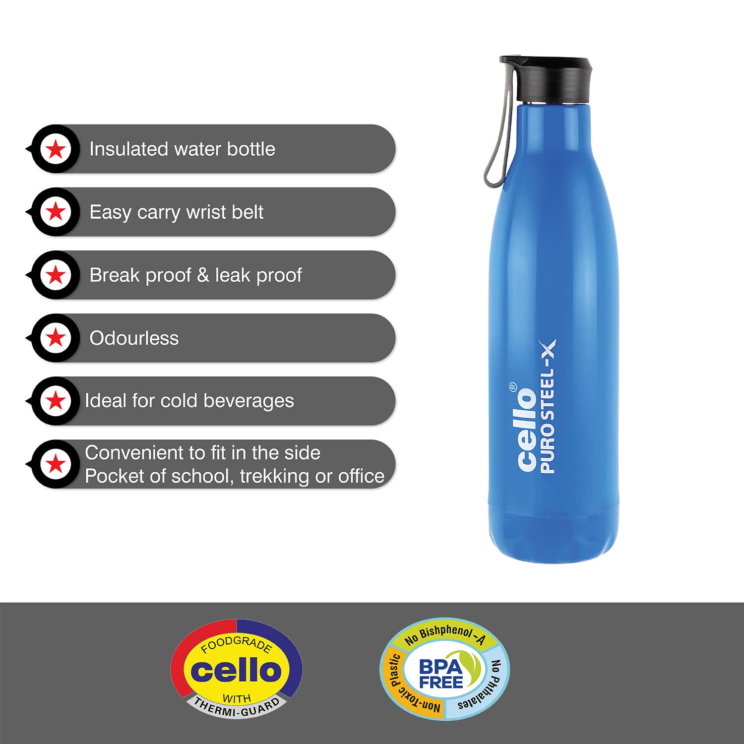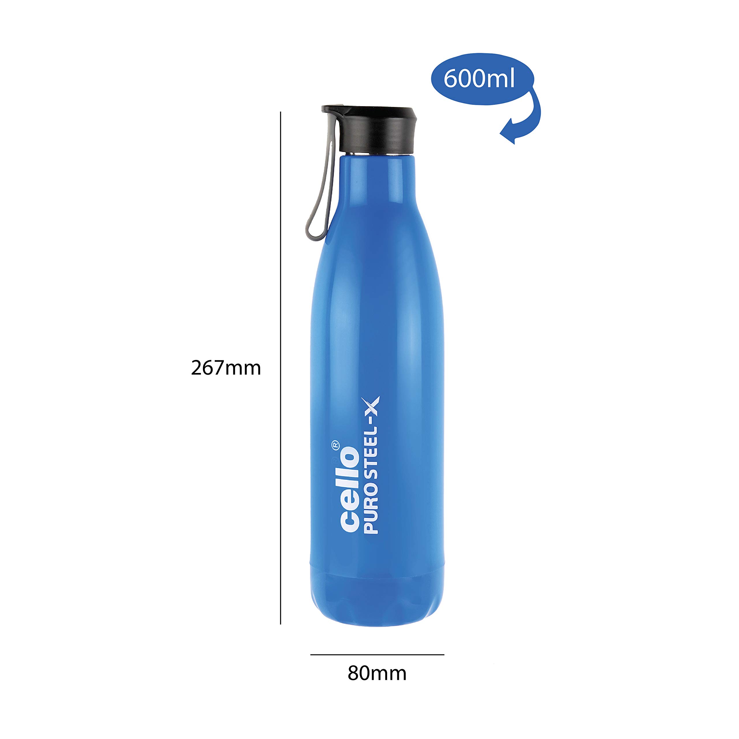 HomeKitchenContainersBottlesCELLO Puro Steel-X Rover 600 | Water Bottle with Inner Steel and Outer Plastic | Leak Proof Insulated Water Bottle | Suitable for Home School Office Outdoor | 480ml Blue