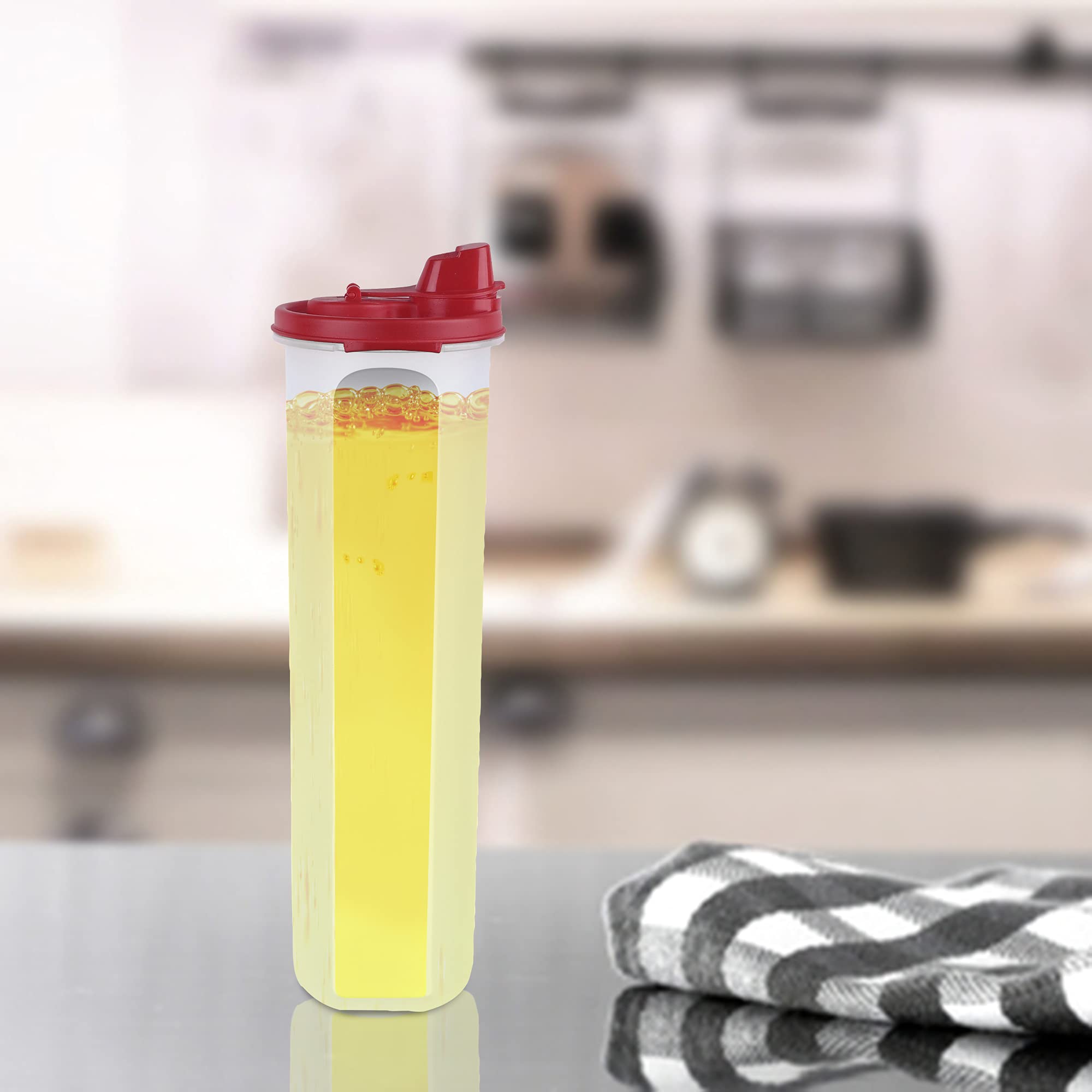 Cutting EDGE Air-Tight & Leak Proof Plastic Oil Pourer - for Vinegar Sauces Olive & Refined Oils Easy Flow BPA Free Refrigerator Safe (Dark Red) (1 1.1L)