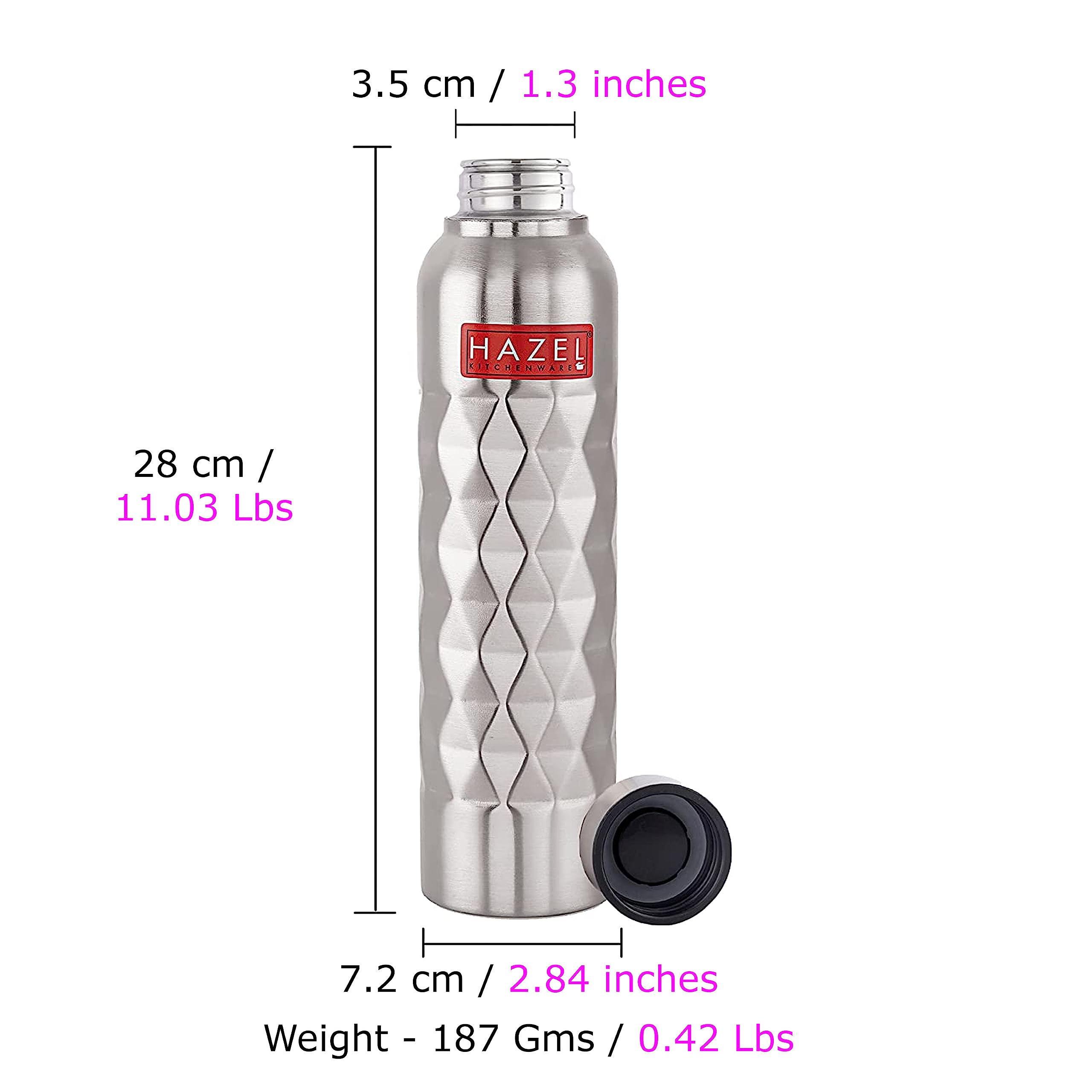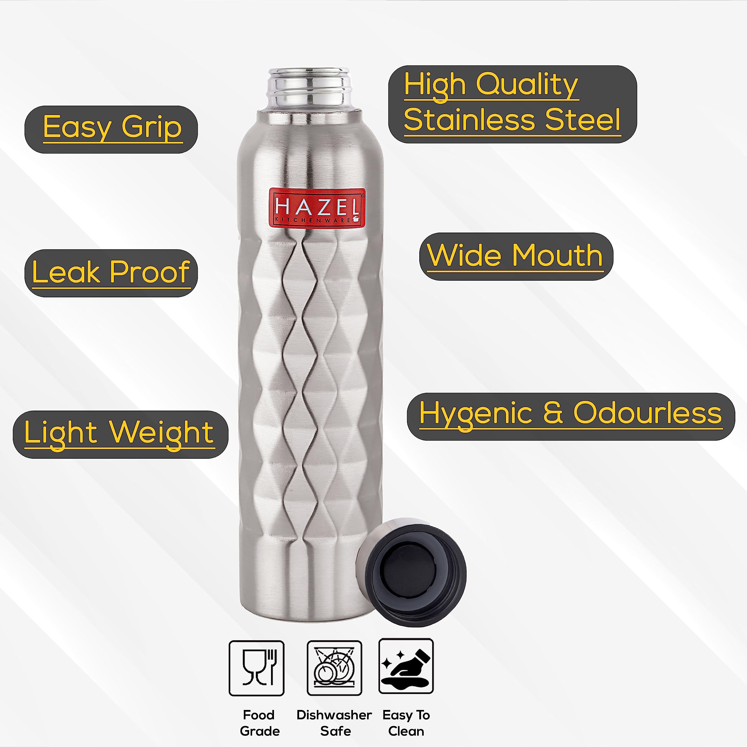 HAZEL Stainless Steel Water Bottle Loch S1 | 1 Litre Single Wall Fridge for office | School | Trekking | Hiking | Travel Pack of 1