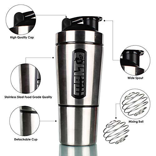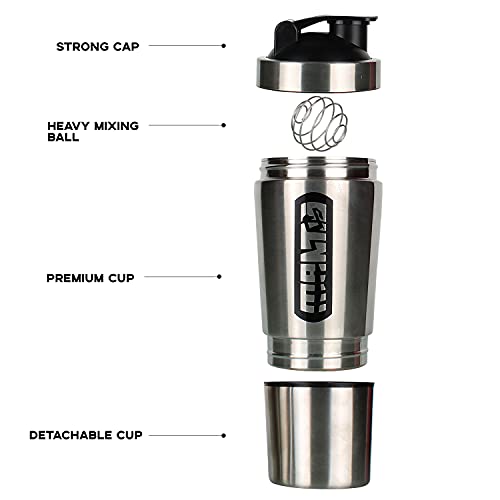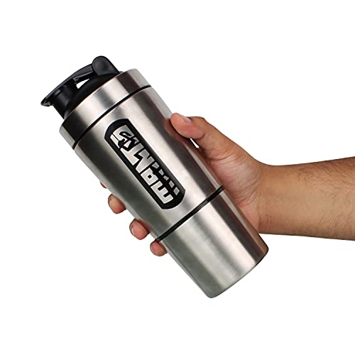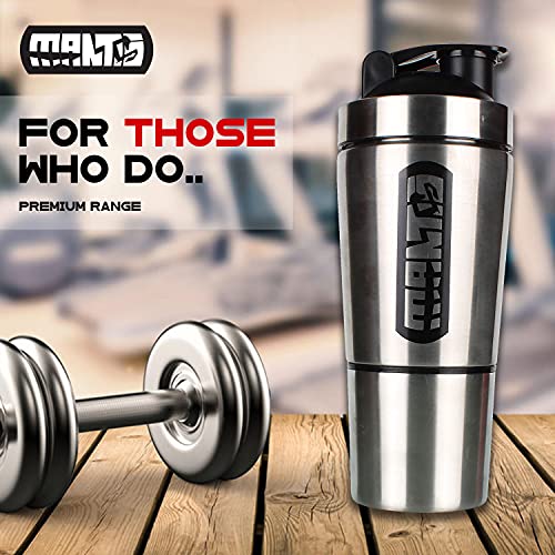 MANTIS Stainless Steel shaker bottle is 100% food grade and leak proof. Say good bye to smelly and poor quality shaker bottles. MANTIS presents shaker bottle in high grade stainless steelStainless steel shaker bottles are good for the environment and good for your health. Have a longer serving life then plastic shaker bottle. it's Strong and its sturdy and also extremely friendly to our environment. Unique brushed stainless finish gives it lasting finish. The volume market is visible inside and outside the bottle for clear liquid indication. Extra compartment makes it very easy to carry protein on a go. Extremely rugged design and build for carry to gym and your favourite sports.