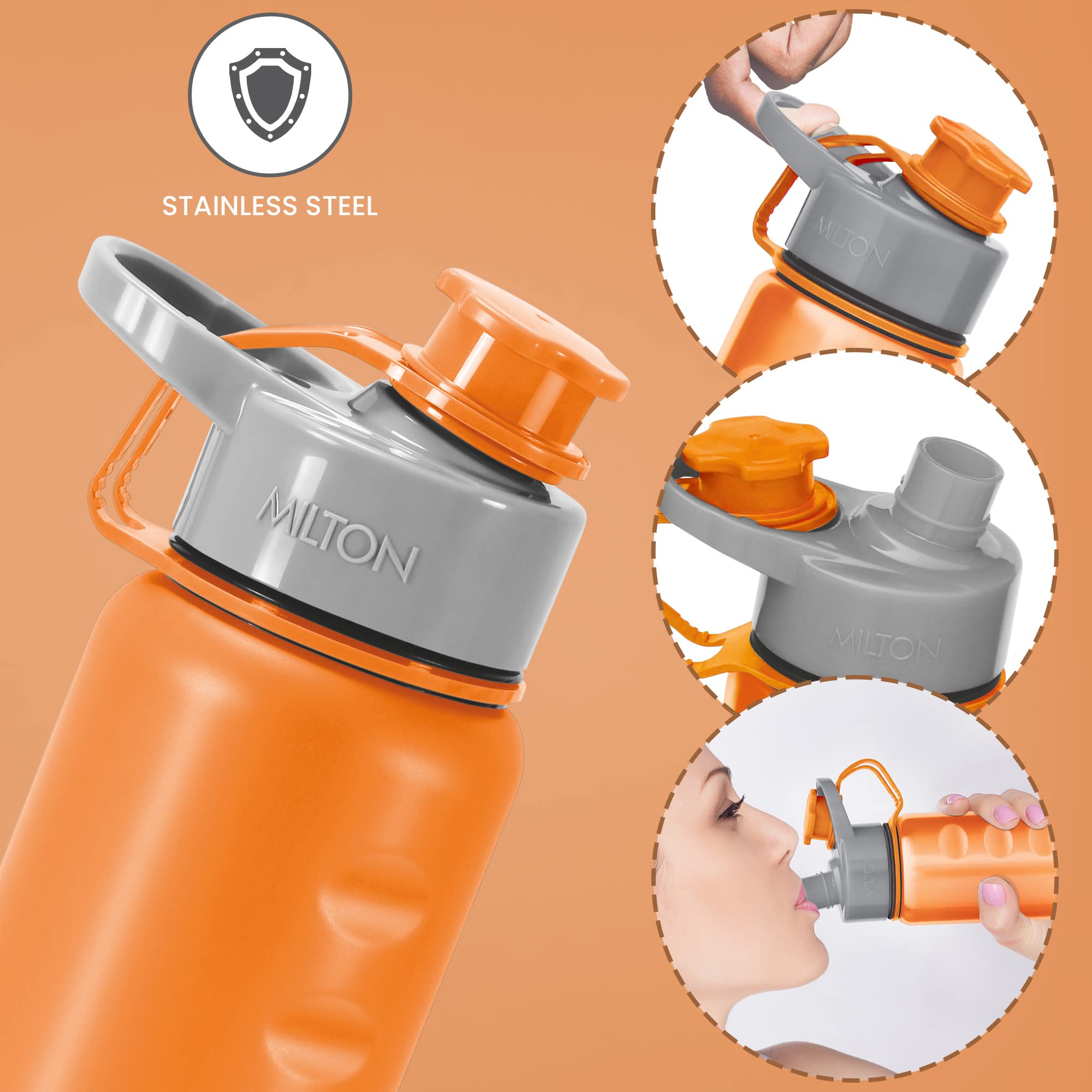 Made of premium grade rustproof stainless steel this bottle comes with a cap covered spout and a handle attached to its lid that makes it easy to carry around. Specially designed with grooves on its body for the firmest grip Gripper is the perfect partner for all your sporty adventures