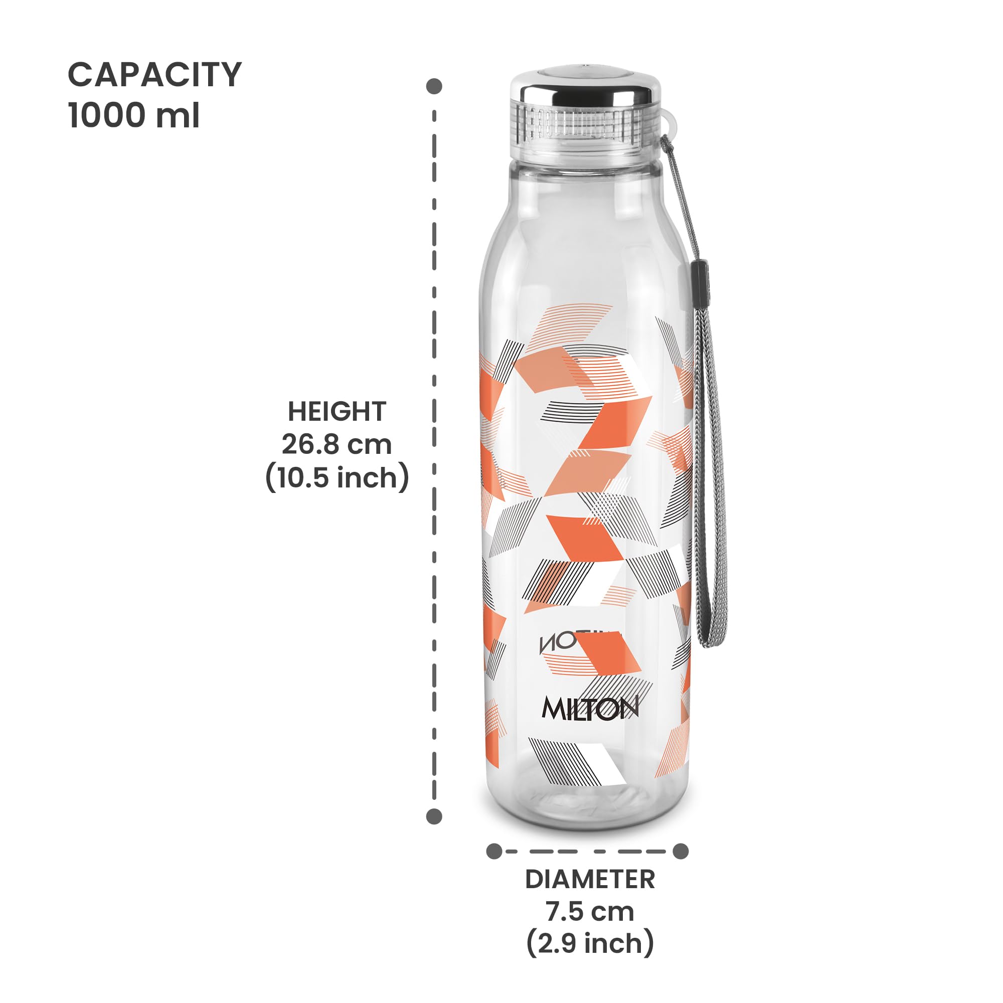 HomeKitchenContainersBottlesMILTON Helix 1000 Pet Water Bottle 1 Piece 1 Litre Orange Reusable Plastic Fridge Bottle BPA Free and Leak Proof Bottles for Travel Work