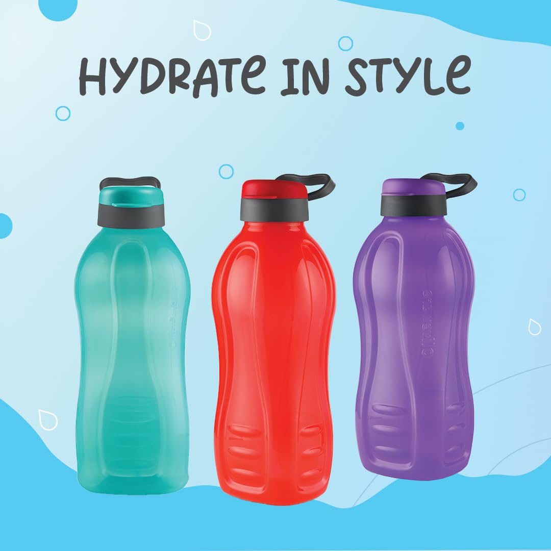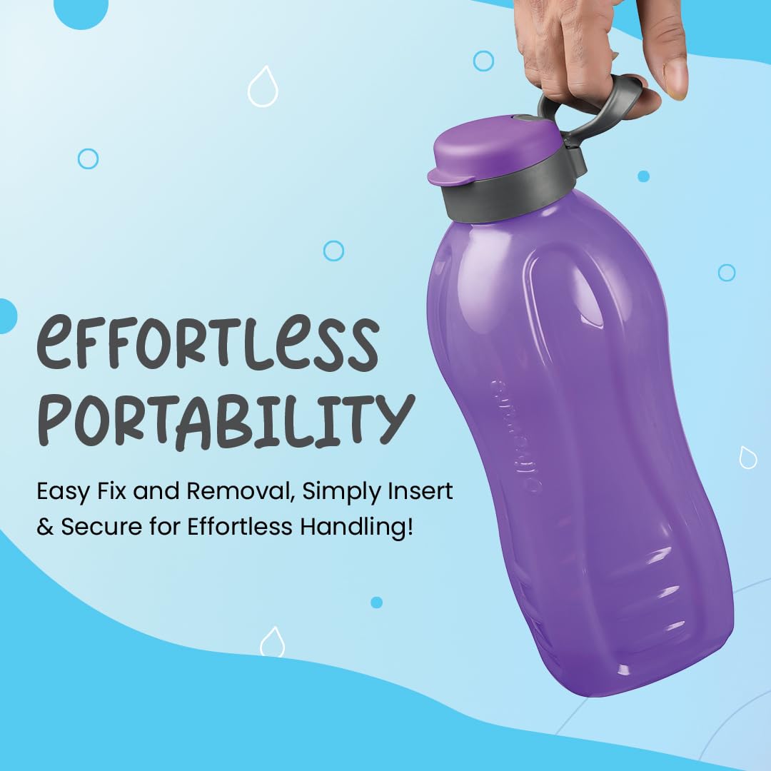 oliveware Jumbo 2 Litre Water Bottle 100% Leak Proof BPA Free Premium Plastic Bottle for Home Office & Gym Sturdy with Holder Pack of 2 (Voilet)