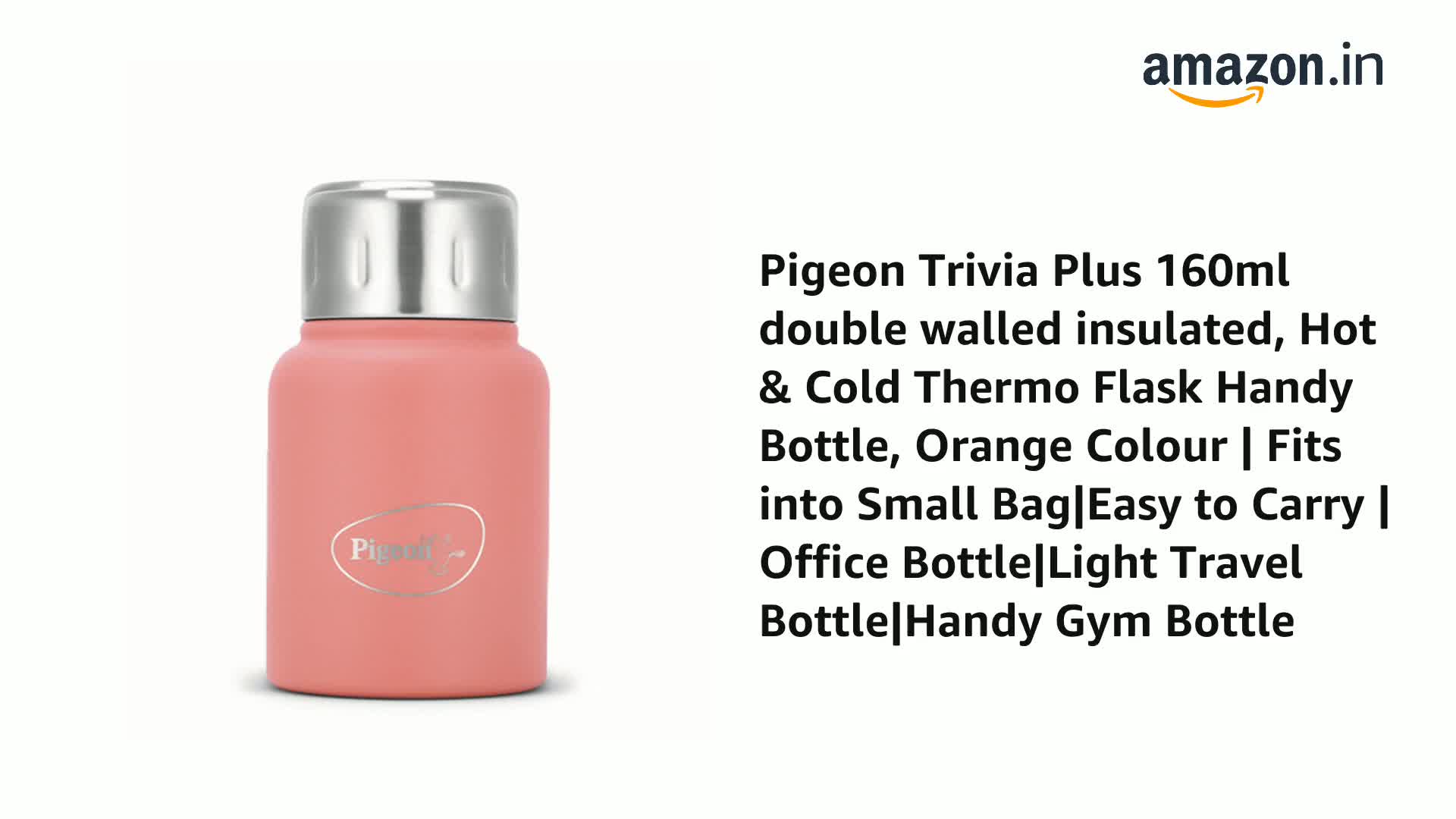 Pigeon Trivia Plus 160ml double walled insulated, Hot & Cold Thermo Flask Handy Bottle, Orange Colour | Fits into Small Bag|Easy to Carry | Office Bottle|Light Travel Bottle|Handy Gym Bottle