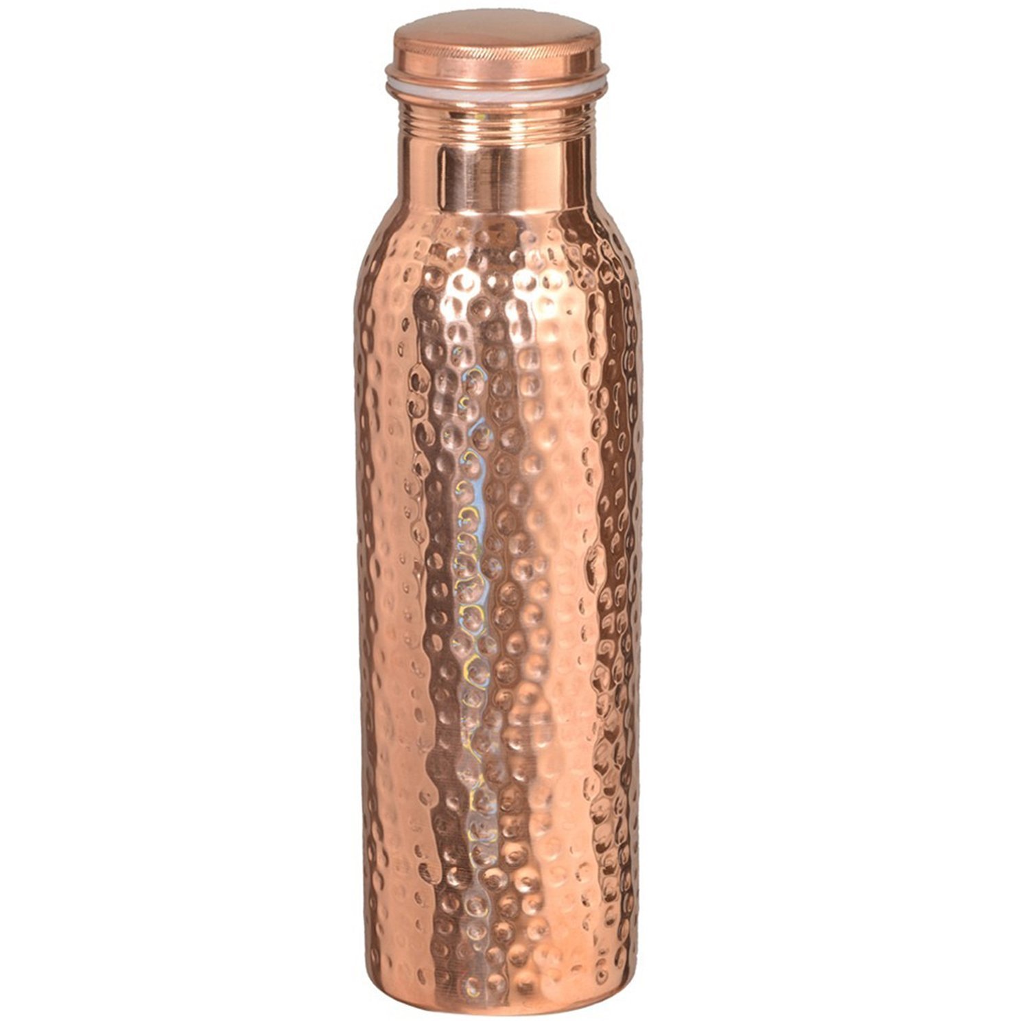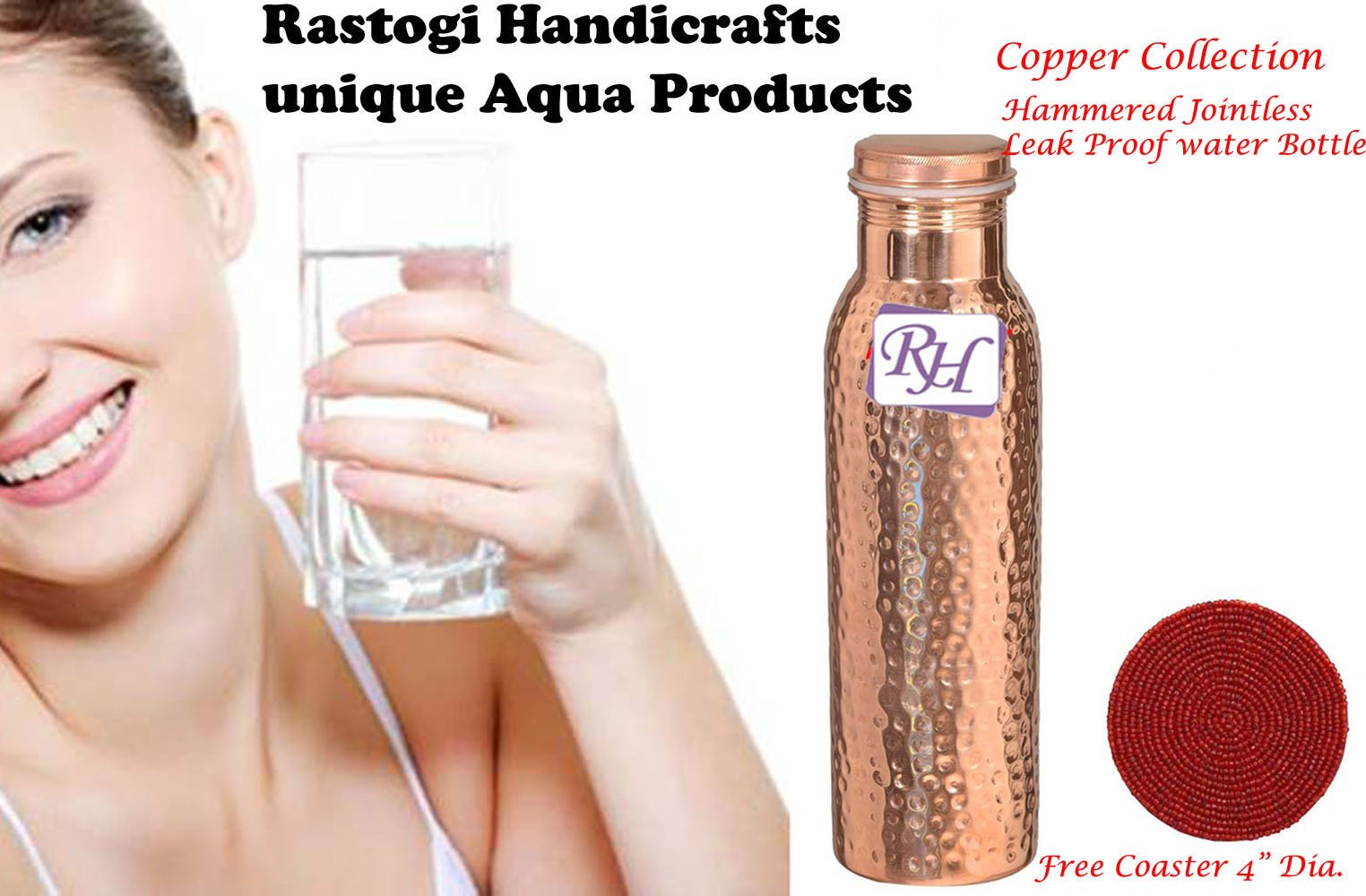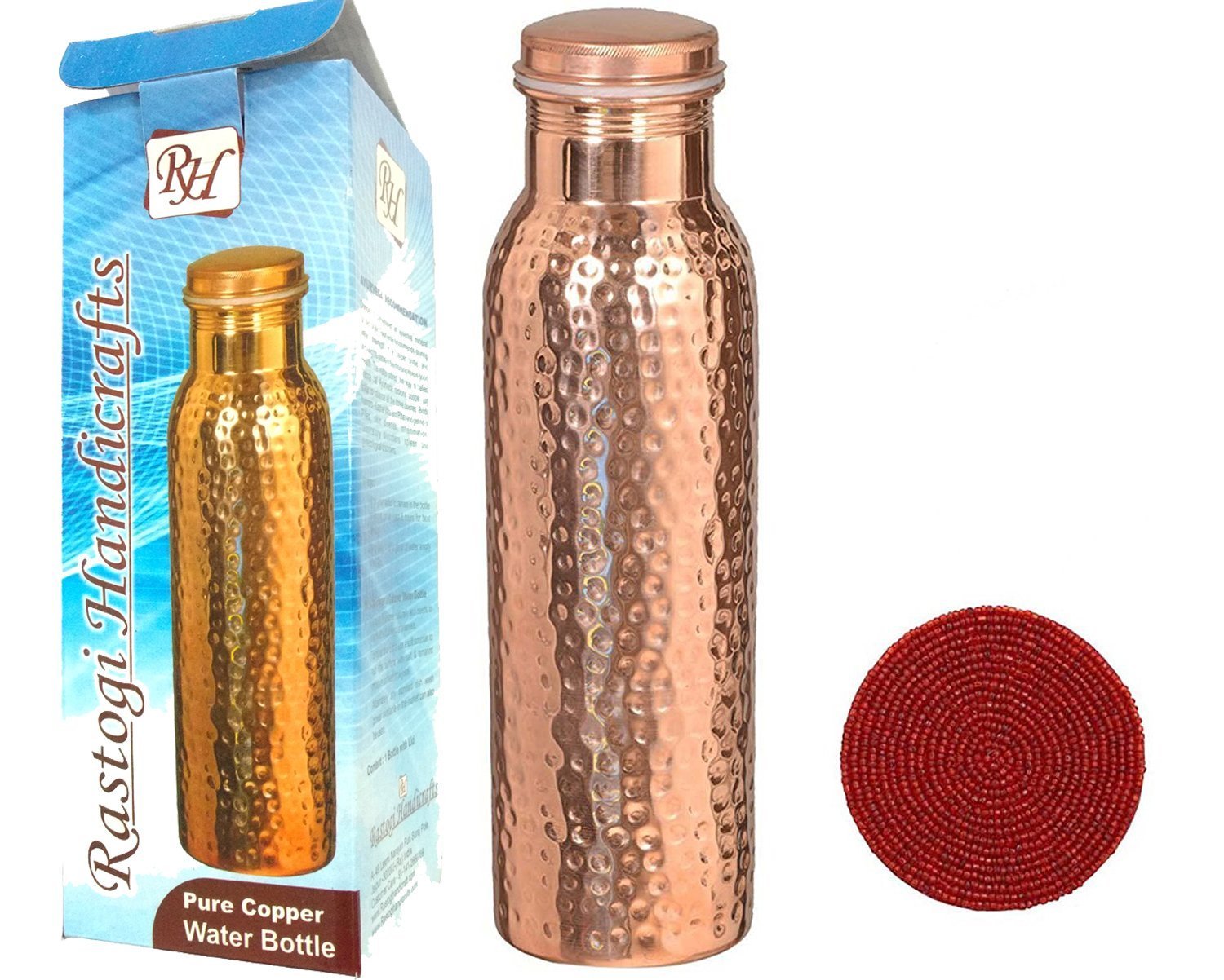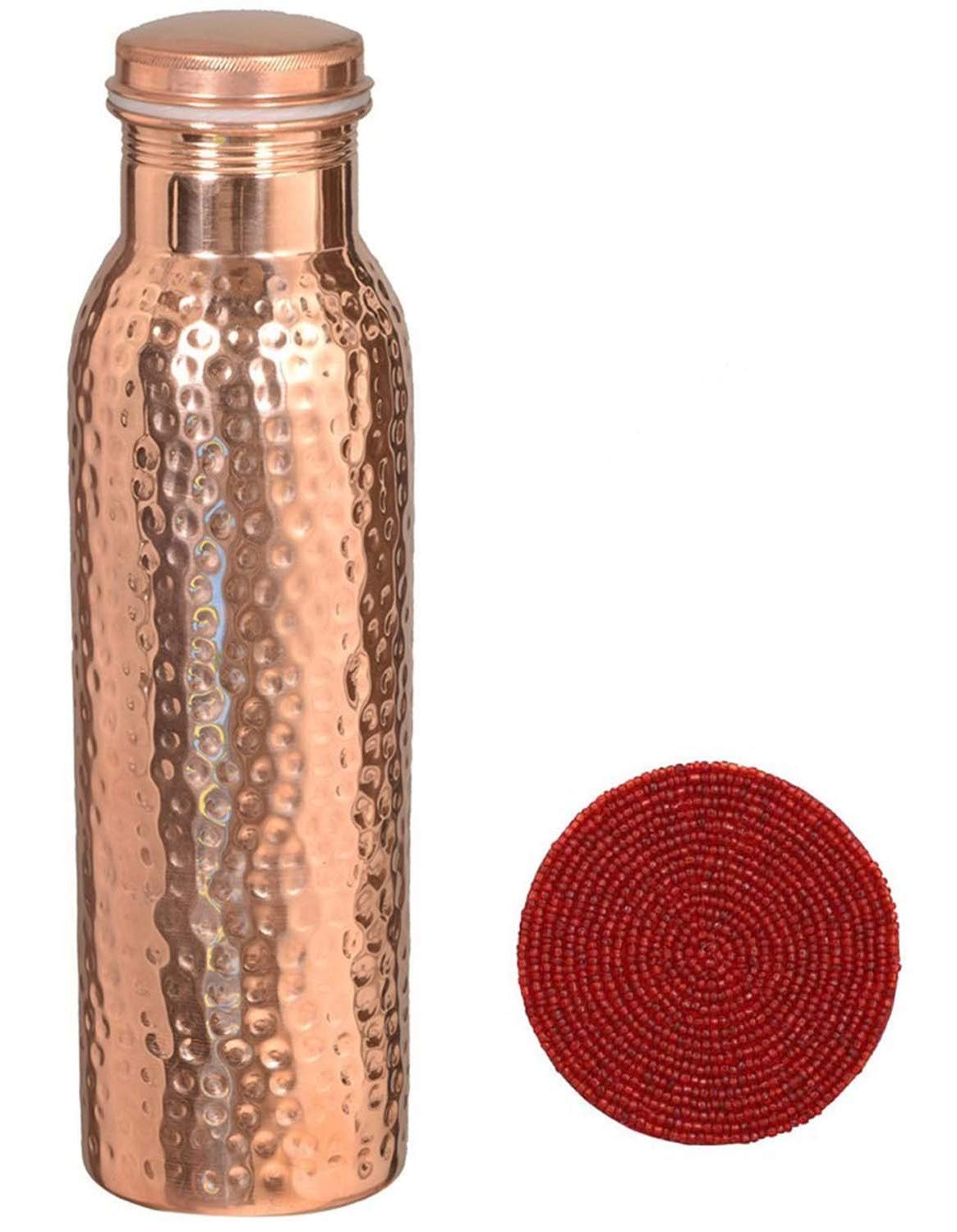 Rastogi Handicrafts Genuine Copper Water Bottle Jointless leak proof & Hammered 900 ML Capacity with a Coaster