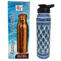 Rastogi Handicrafts Pure Solid Copper Water Bottle Hand Painted Blue Pottery Design