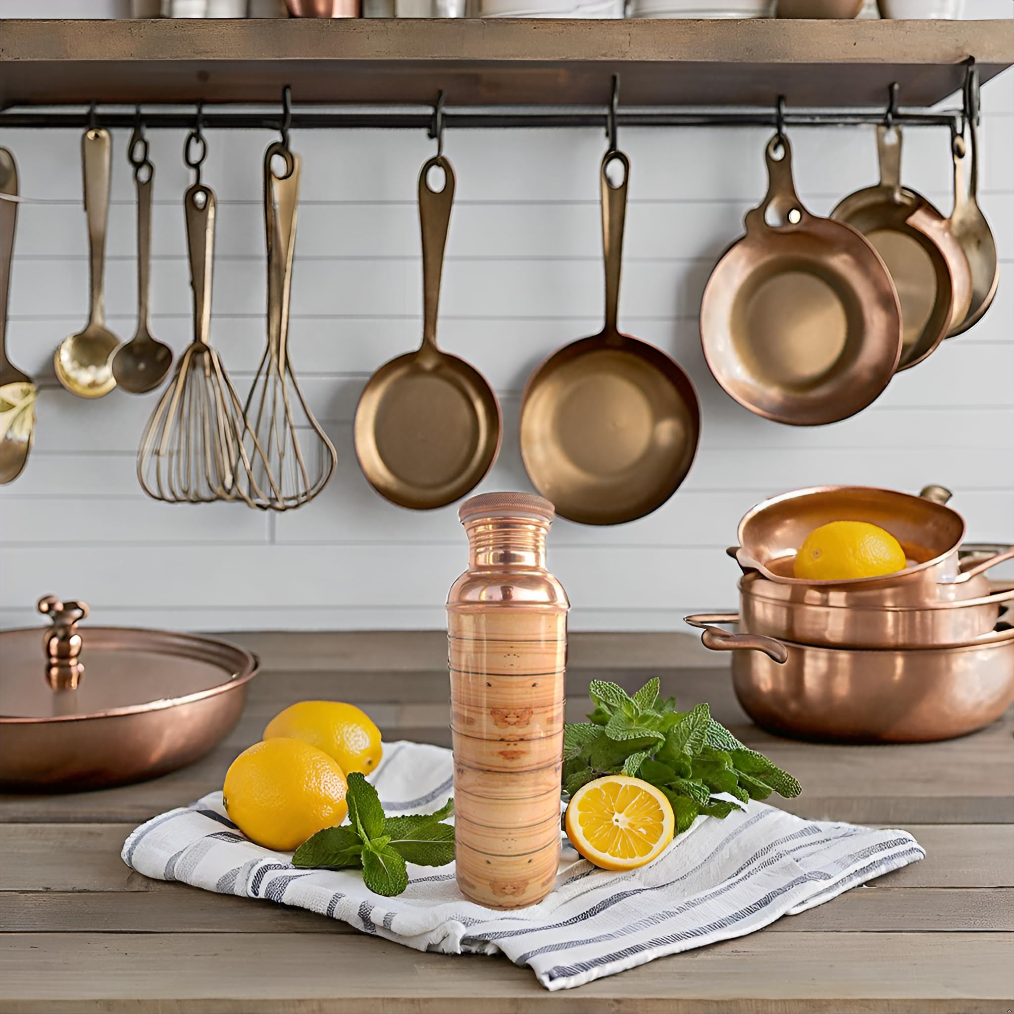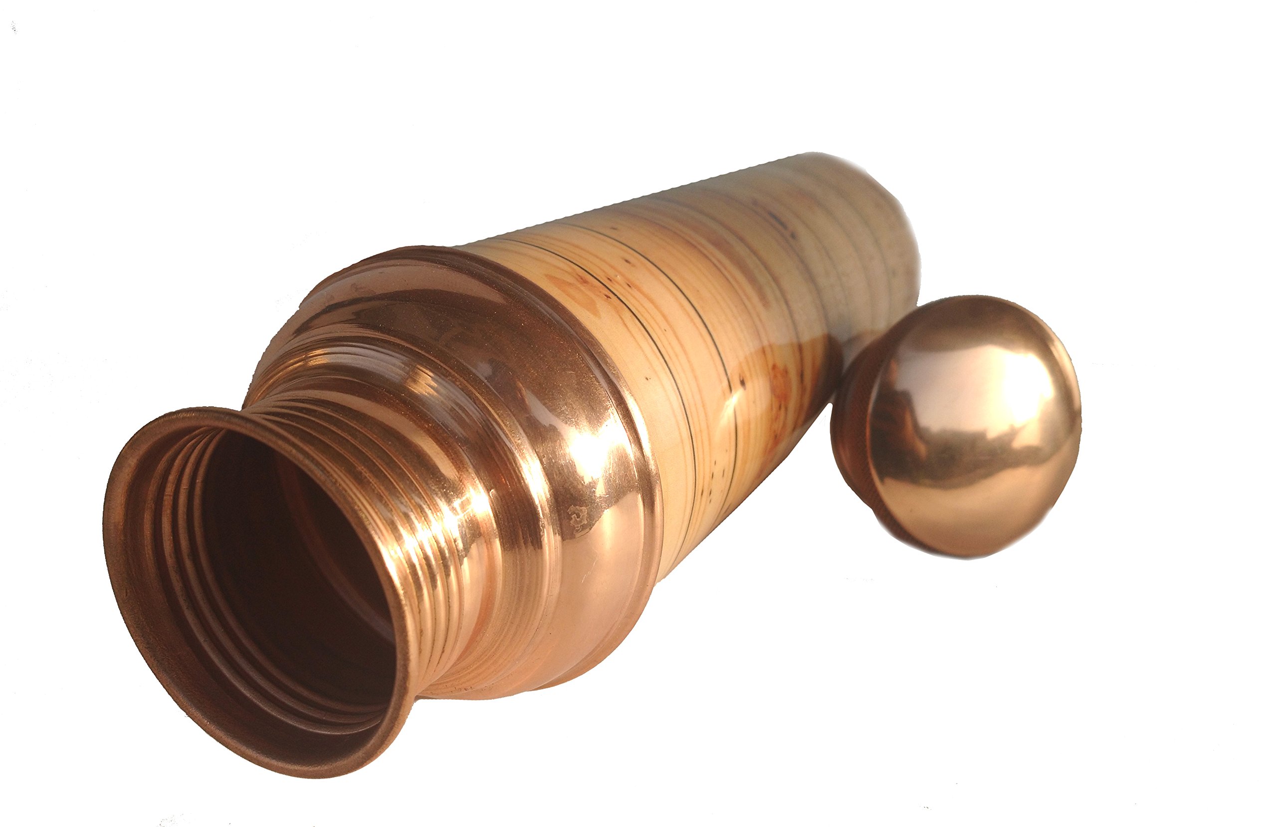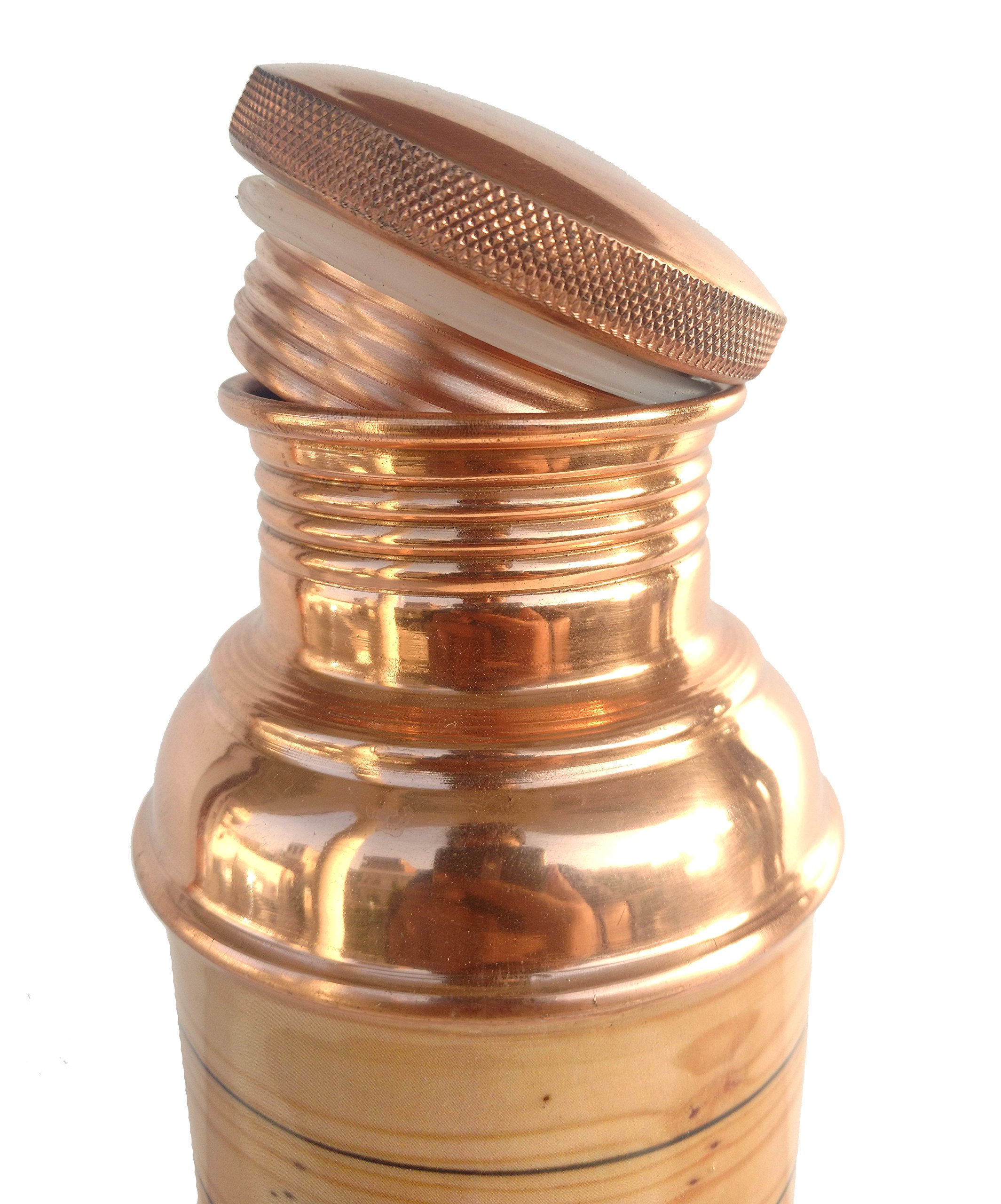 Copper Bottle Color: Copper Material: Pure Copper Height: 10 "INCH Width / Diameter: 2.9" INCH Capacity: 950 ML