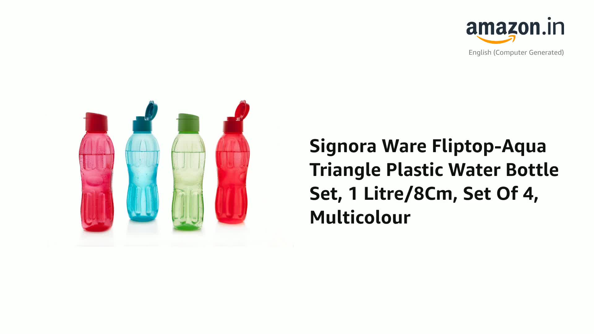Fliptop-Aqua Triangle Plastic Water Bottle Set 1 Litre/8cm Set of 4 Multicolour