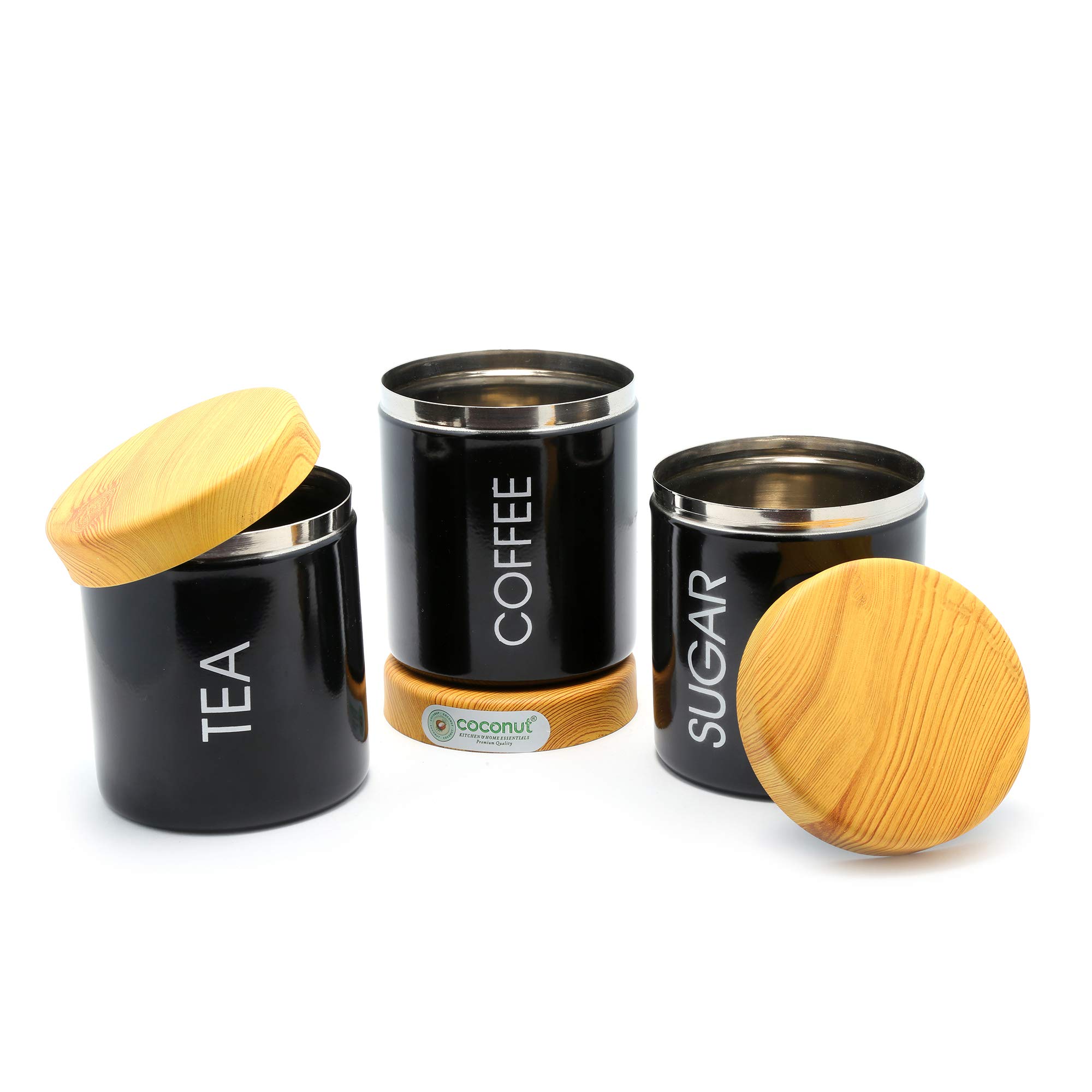 Product Content: Coconut TCS Black Canister - Tea Container - 1 Piece Coffee Container 1 Piece & Sugar Container - 1 Piece. Colour Black
