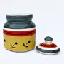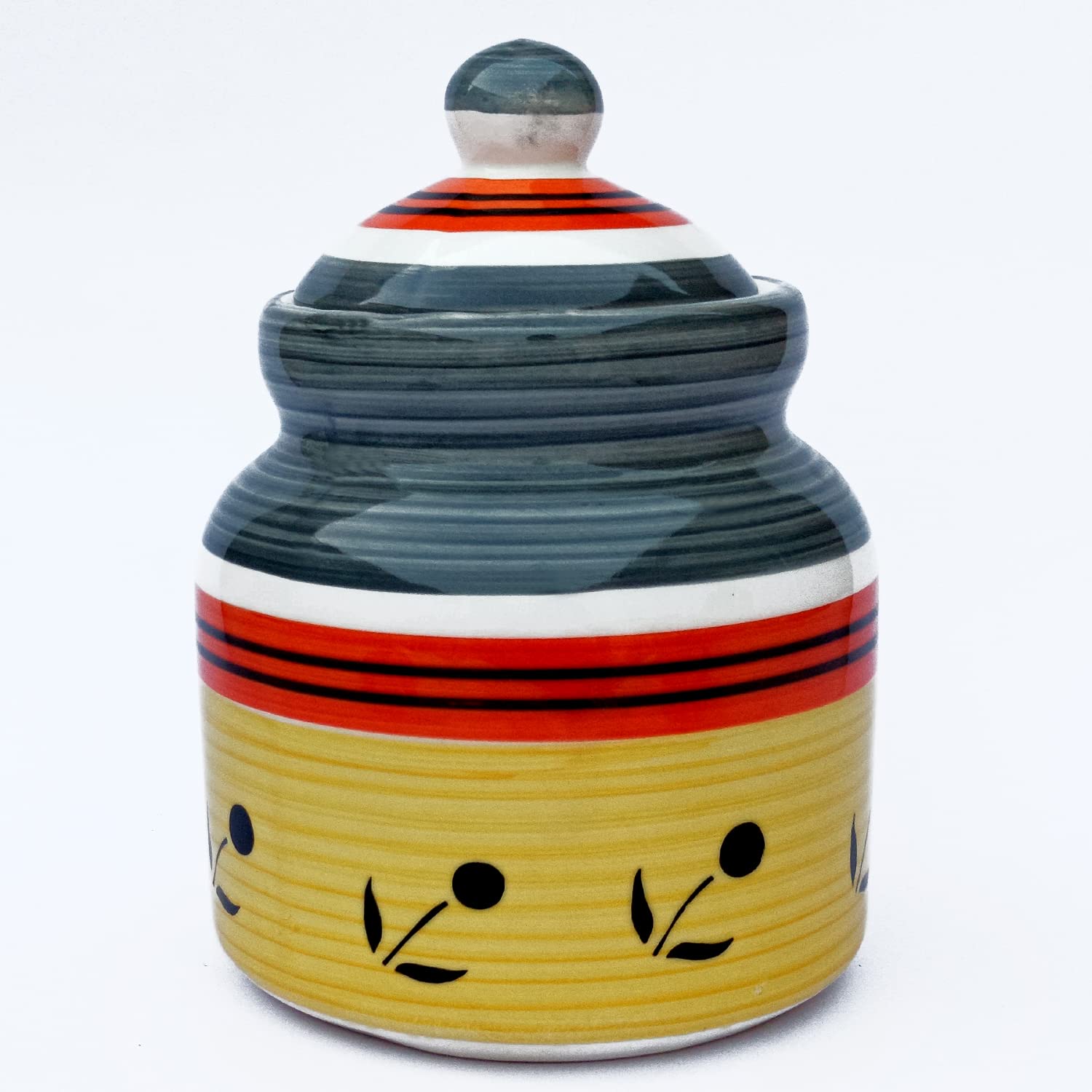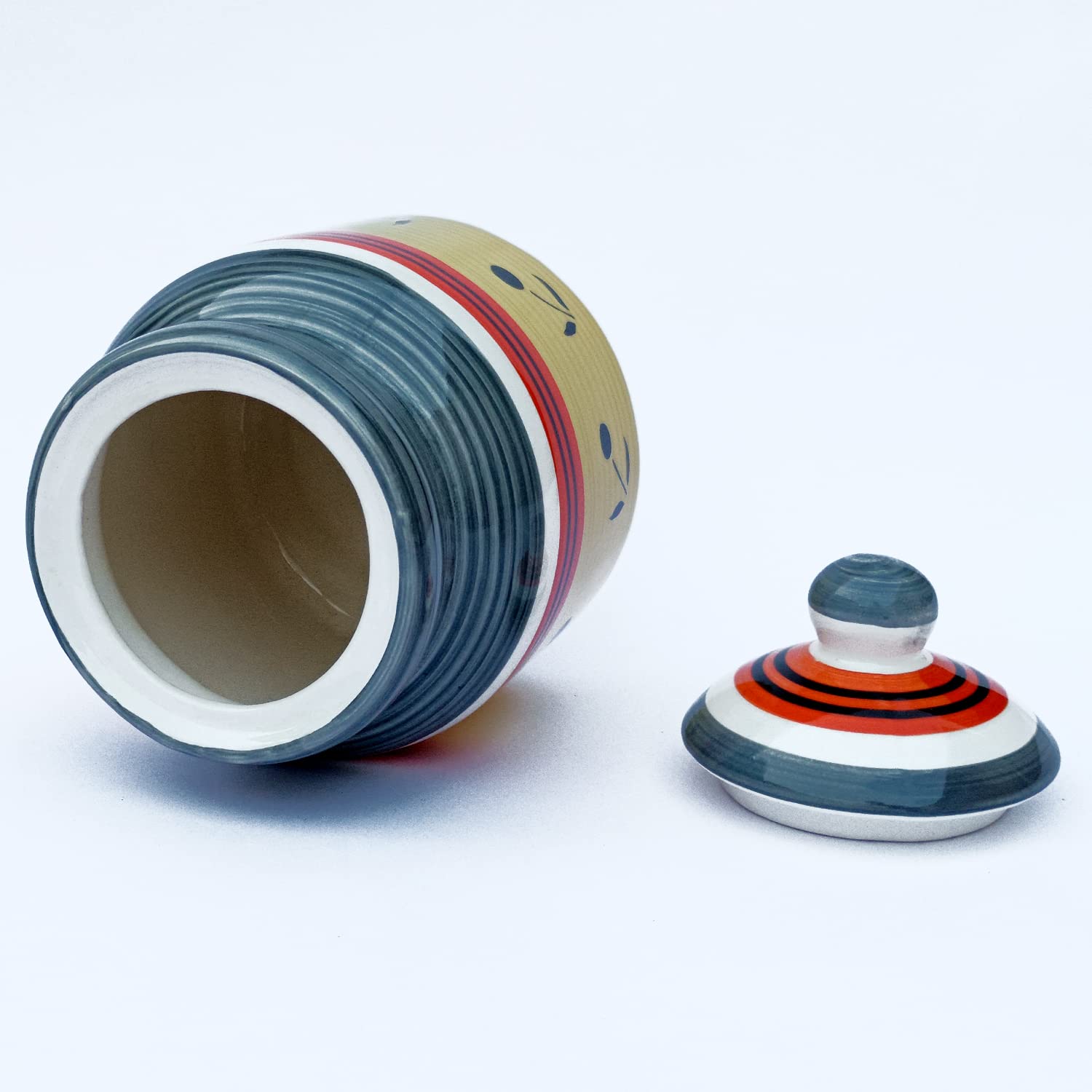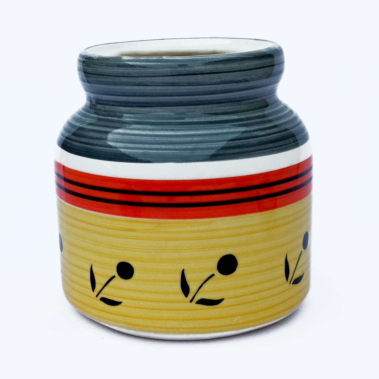 KHURJA POTTERY Pickle Storage Burni Masala Container Aachar Chutney Serving Marmalade Barni Canister Ceramic Handpainted Jar (Yellow - Grey - Red 1250ml) Microwave & Dishwasher Safe