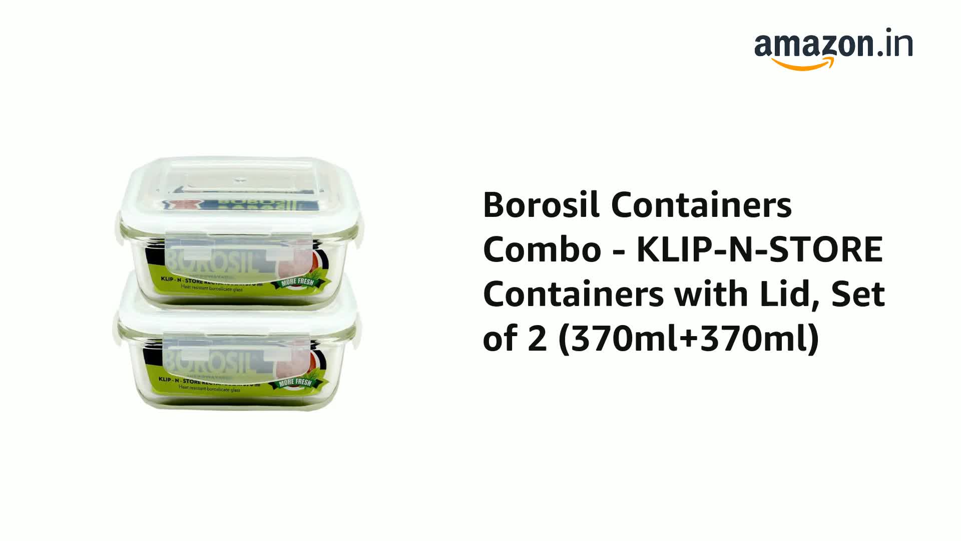 Borosil Containers Combo - Klip & Containers with Lid, Set of 2 (370ml+370ml)