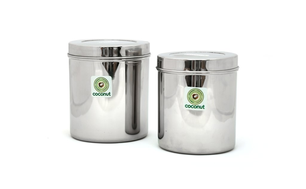 Coconut Stainless Steel Containers/Storage/Deep Dabba Set of 2 (2000 ML & 2500 ML)