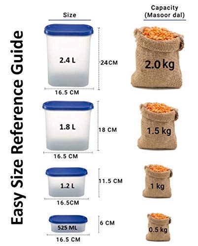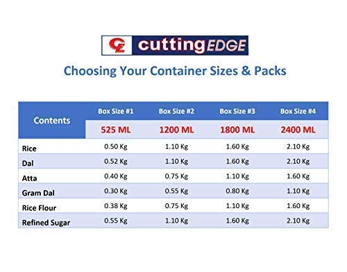 This product contains premium modular containers .A unique flip top to suit nearly every possible requirement for your kitchen storage including for rice pulses flour grains and nearly any dry storage application both in your kitchen and around the house. Ideal for food prep by keeping your chopped vegetables fruits and leafy greens fresh for longer and eliminating or reducing food wastage. Can be used in the refrigerator freezer and microwave without any worries for reheating applications not suitable for otg applications). Cutting edge products are made in the strictest of conditions with the best of care to ensure the best for your and your family. They don't just meet but even exceed all required safety standards so that you can have the required peace of mind when it comes to your loved ones. Not just that our production units are certified to be green giving you the confidence that your products are sourced from environmentally friendly units with all waste being recycled to ensure we do our part in preserving the nature around us. Cutting edge modular kitchen storage containers are super strong and sturdy and designed to last for years of rough use in the kitchen pantry. These are large sized and the mouths have been designed for your hands to comfortably fit in for easier access to your favorite foods and snacks. You can use them to store dal cereals baking supplies oats pasta cereal rice flour sugar coffee tea snacks nuts papad. These are air tight liquid tight with a freshness seal to ensure your items are preserved in their best condition for as long as possible. Our containers are made of virgin pp material which is non-toxic bpa free fda compliant as per international norms and 100% recyclable to ensure that your containers don't harm the environment once you're completely done with them. The containers are completely modular stackable for easily organizing your kitchen.