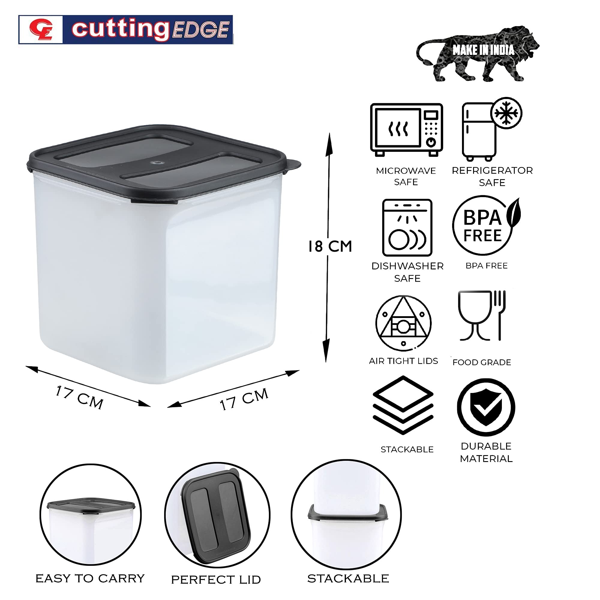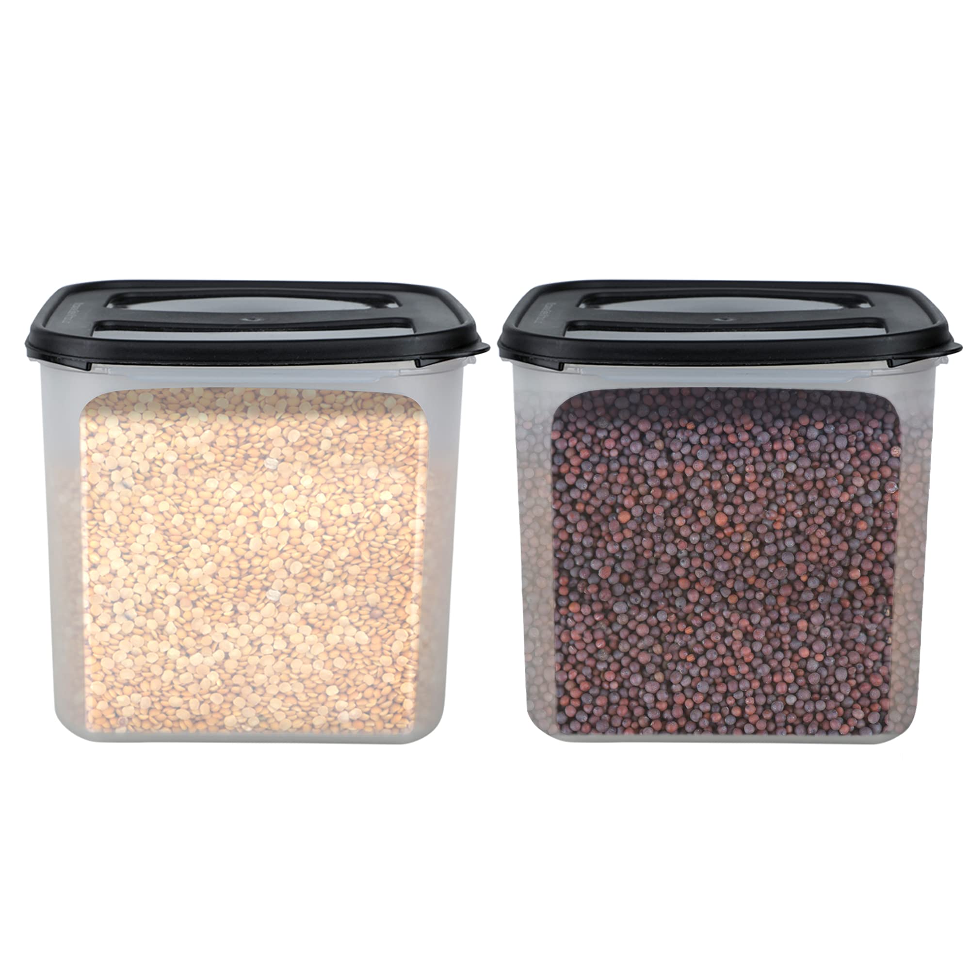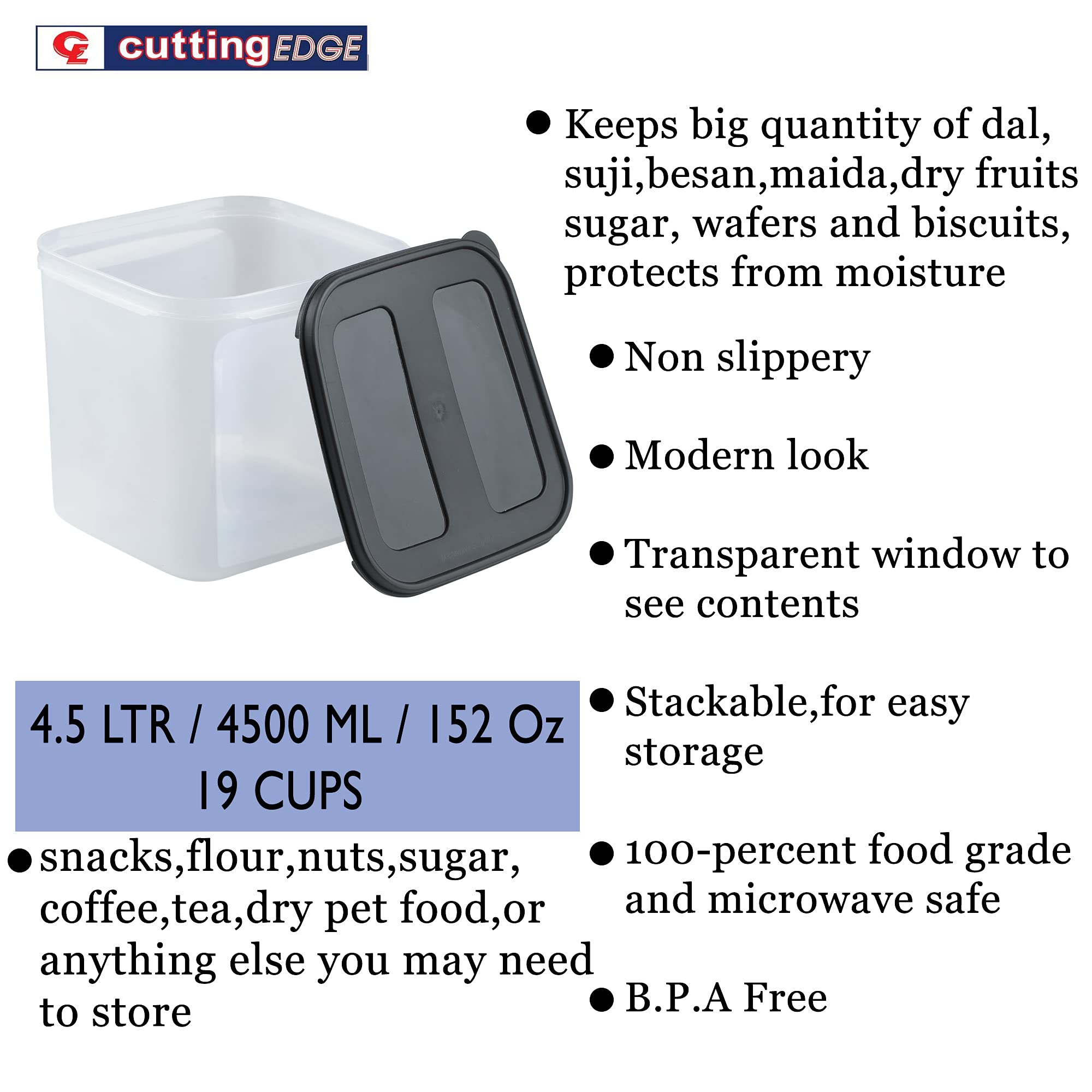 HomeKitchenContainersJars & ContainersCutting EDGE Square Modular Air Tight Multi Purpose Container Set - for Rice, Flour, Cereals, Sugar & More (Black) (2, 4.5L)