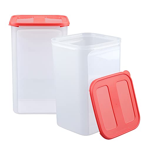 Cutting EDGE Square Modular Air Tight Multi Purpose Container Set - For Rice Flour Cereals Sugar & More (Red) (2 7.5L)