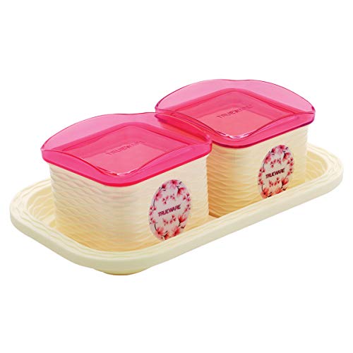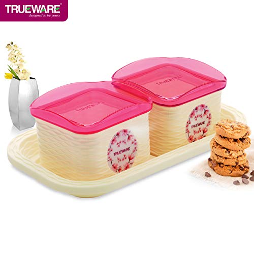 Trueware Daffodil Set of 2 beautiful tableware set with tray which consist of airtight containers ideal for serving and storing dry fruits and other dry snacks. These containers are comes with tray for serving and regular use. The specially designed lid makes containers airtight & keeps contents fresh & crisp. It is perfect for gifting purpose on any festive season .