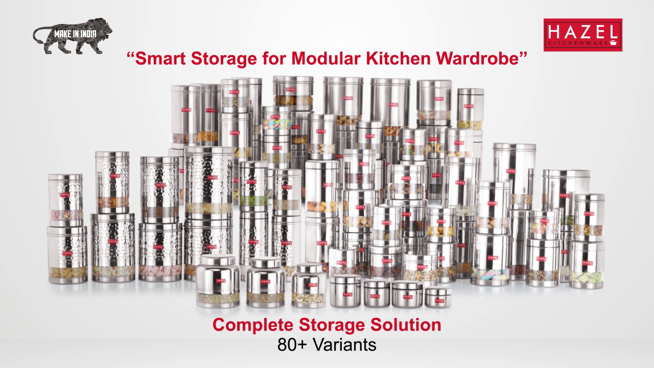 HomeKitchenContainersJars & ContainersHAZEL Stainless Steel Container For Kitchen Storage Hammered Finish Transparent See Through Glossy Storage Jar Dabba, Set of 2, 2200 ML, Silver