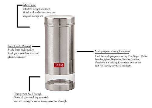HAZEL Stainless Steel Transparent See Through Container, Silver, Set of 5, 1 Ltr