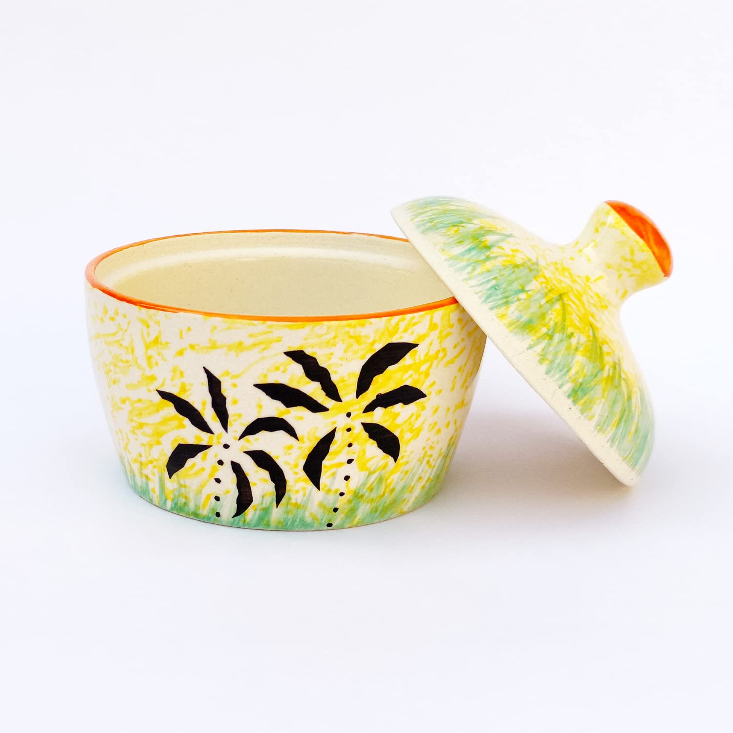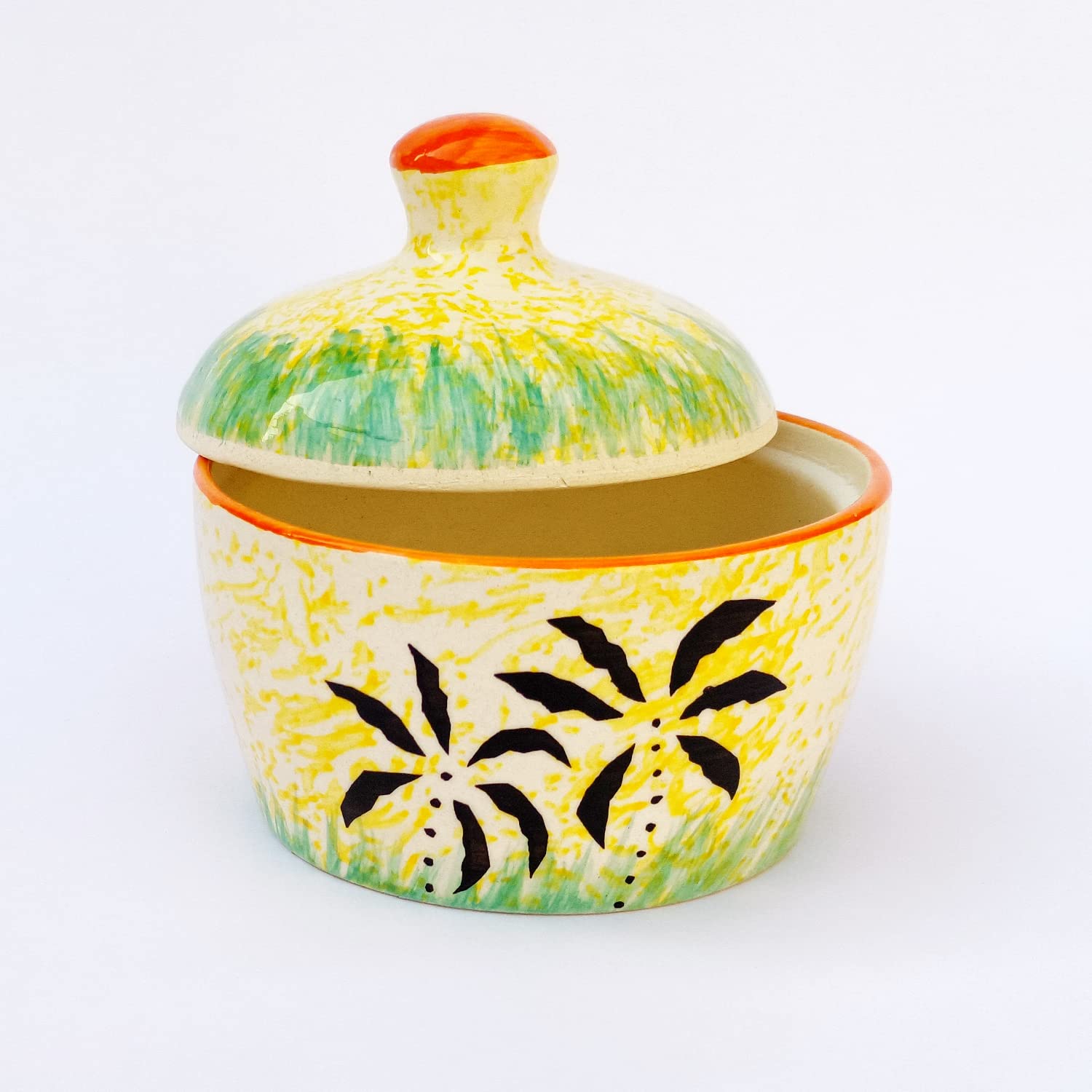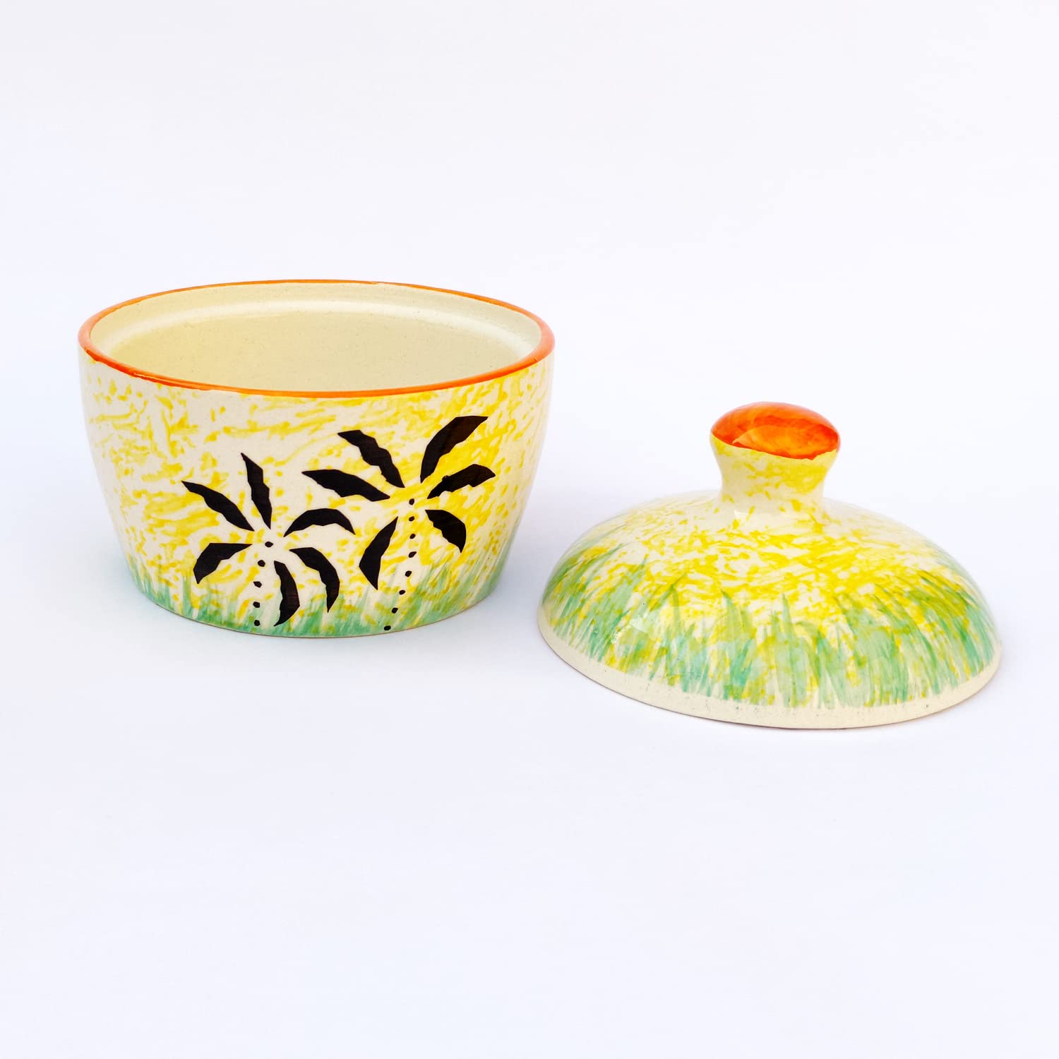 KHURJA POTTERY manufactured this elegant white matt butter pot keeps the butter fresher for longer and at the right consistency for spreading on crusty bread or baked potatoes for morning toast or evening dinner rolls. It is also perfect for keeping the butter at room temperature for everyday use. This pot is constructed from stoneware a high quality ceramic material. Its finish and amazing matt finish ensures that this pot will blend in beautifully with any type of surrounding you may have. Whether you are running a catering company a sit-down restaurant or buffet this butter pot is a beautiful and necessary accessory. Butter has never looked better than when neatly displayed in this dish. It adds pure elegance and sophistication to your table decor with its modern design. Can also be used for storing and serving chutneys and pickles besides butter.
