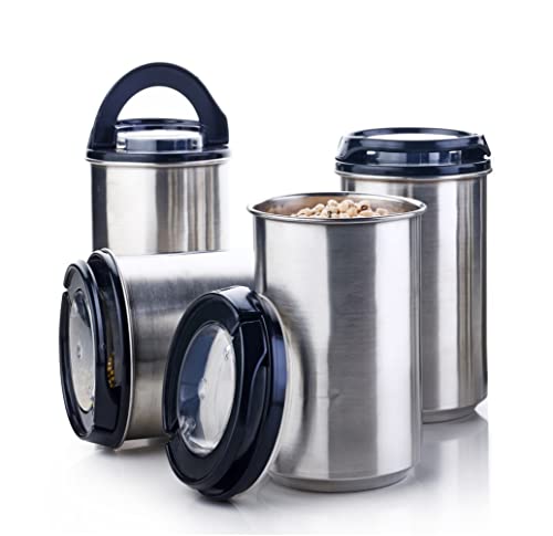 Airtight steel storage containers for home and kitchen use. Made of steel that is durable and long lasting