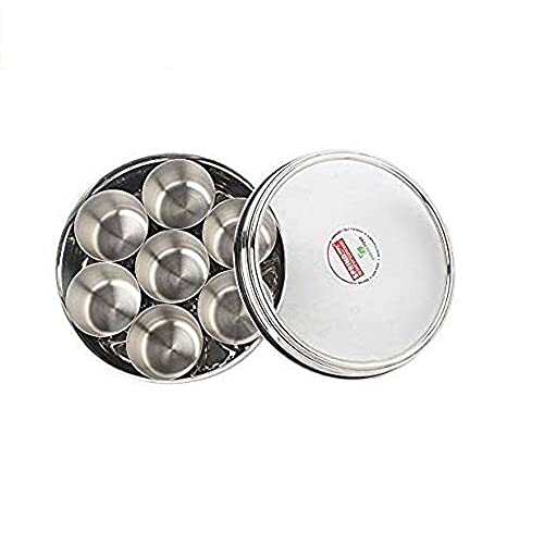 HomeKitchenContainersJars & ContainersSPRINGWAY - Brand of Happiness | Masala Dabba Stainless Steel, See Through Lid with 7 Containers, and Small Spoon (Medium)
