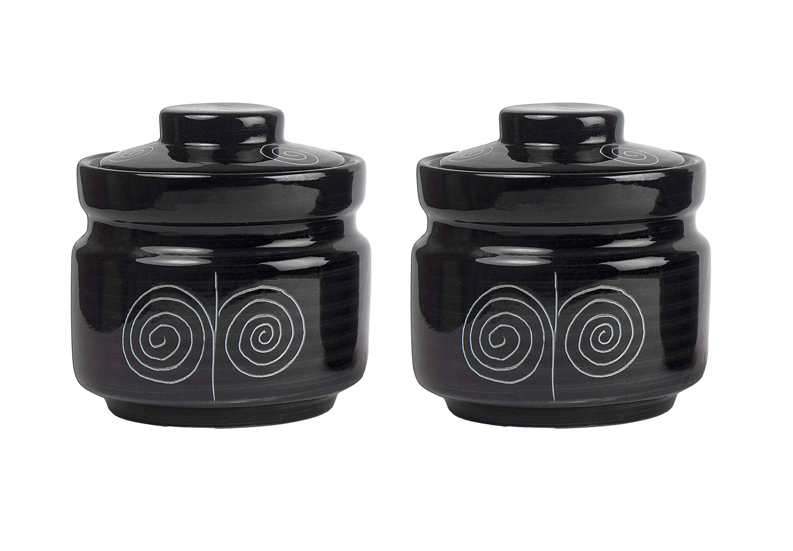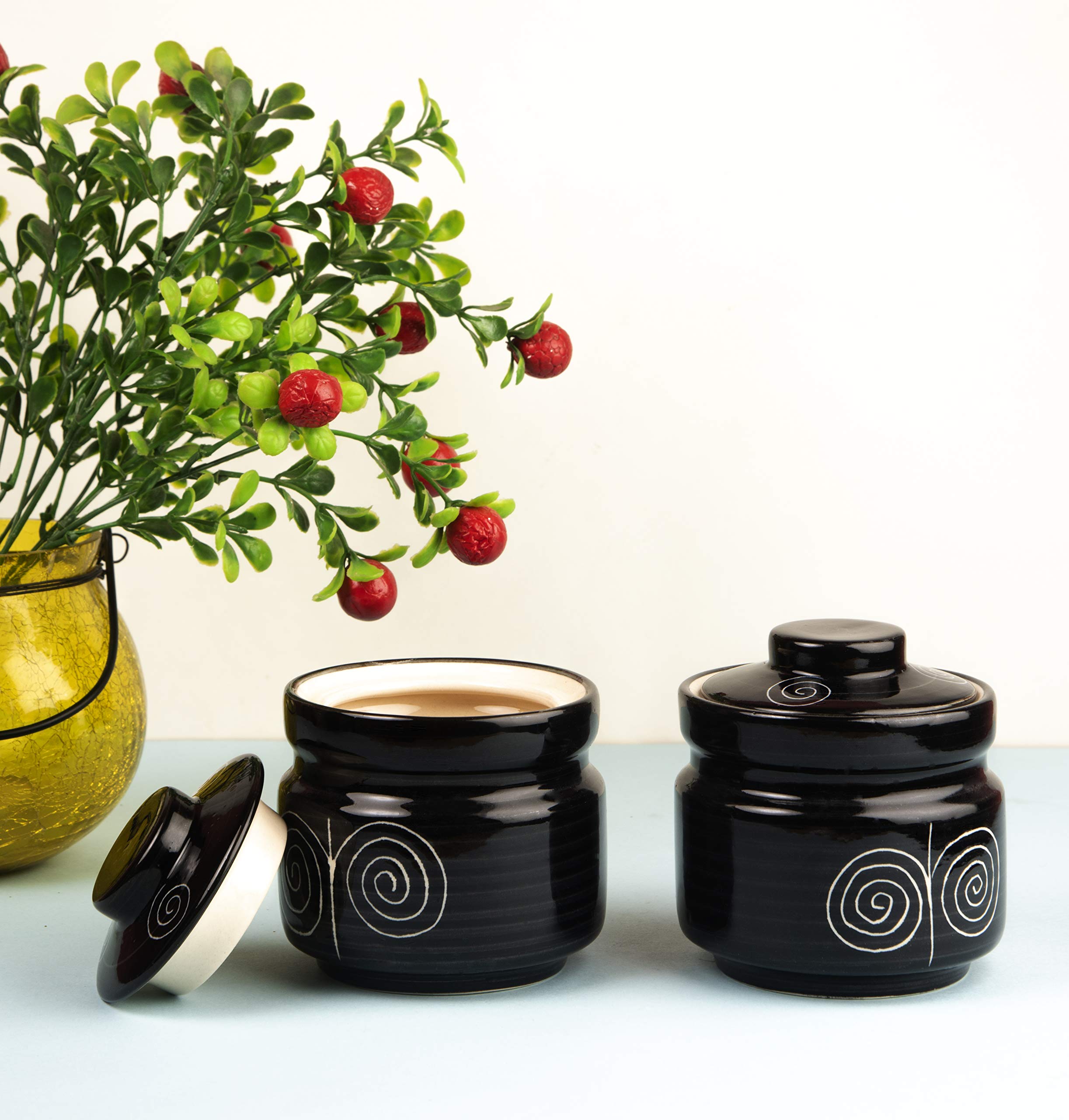 KHURJA POTTERY Hand Painted Ceramic/Stoneware Multipurpose Jar 300ml Set of 2 Black