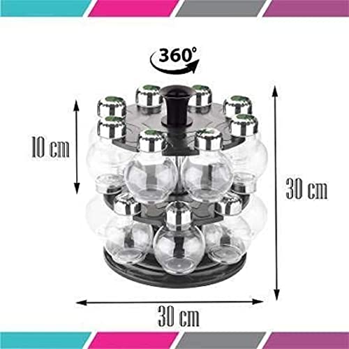 LEVERET Multipurpose Plastic Big Revolving Spice Rack 16 in 1 / Masala Rack Set/Condiment Set/Spice Container