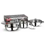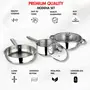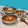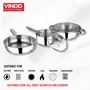 Vinod 3 pc Modena stainless stainless induction based cookware is GO TO set for all your meals whether it is to boil Milk for breakfast in saucepan that comes with glass lid or cook your favorite lunch in the Kadai with glass lid or simply toss a aloo tikki or eggs for your evening snack in our frypan. They are made from food grade high quality stainless steel using thicker stainless steel for longer use. To ensure you uniform and faster cooking we have used a layer of aluminium at the bottom. We use a base of stainless steel of Grade AISI 430 grade. This is magnetic and allows you to use your induction cook top. The mirror finish of the body and the stainless steel layer at the bottom stays bright and looks as good as new after years of use. It also makes the sauce-pot easy to clean and hassle free. They come with riveted stay cool handles which allow you to work with them effortlessly. Additional Information Base Gas Compatible and Induction Compatible Material Stainless Steel Dishwasher Safe Yes Package Content 1 - Piece Frypan 1 - Piece Kadai 1 - Piece Saucepan 2- Pieces Glass Lid Warranty Details 24 Months Warranty Dimension & Capacity Saucepan - 16 cm 1.5 litre Frypan - 24 cm Kadai - 24 cm 2.7 litre