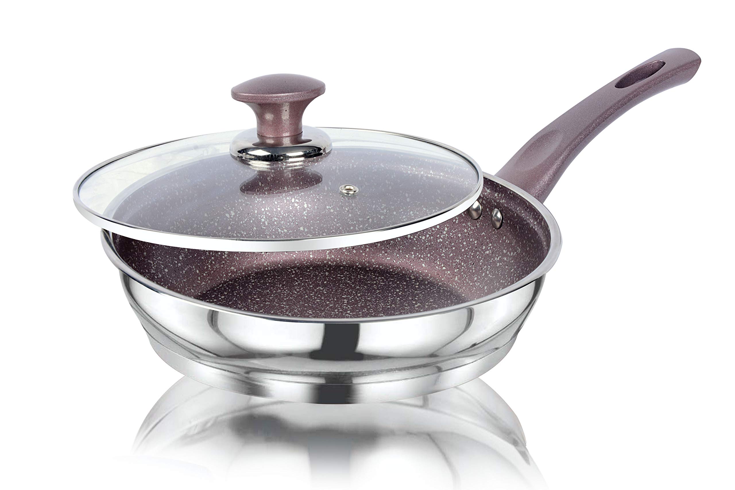 Ethical KITCHENART Stainless Steel Encapsulated Bottom Fry Pan with Glass Lid (Peach)