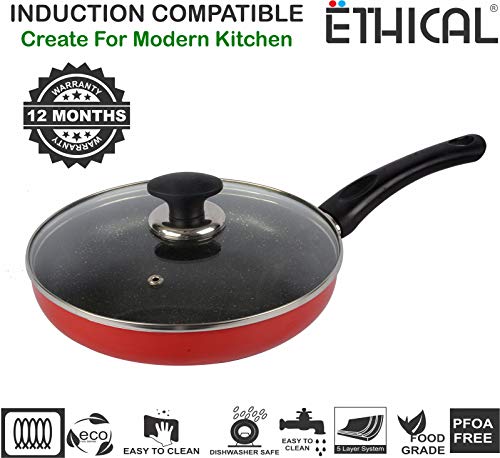 Ethical MASTREO Series Non-Stick Aluminium Induction Base Fry Pan 22cm with Glass Lid - Red