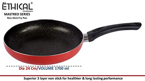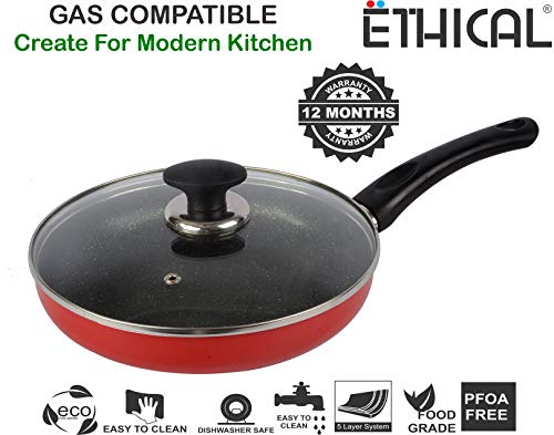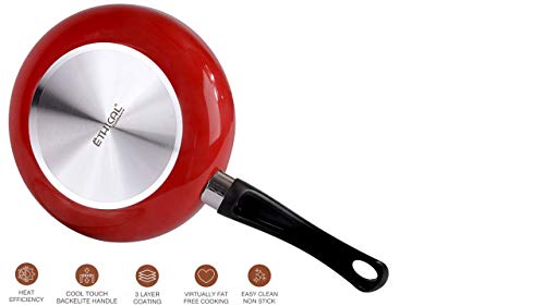 ETHICAL MASTREO Series Non-Stick Gas Compatible Fry Pan 24 cm with Toughened Glass Lid (Red)