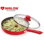 Nirlon Red Stone Aluminium Non-Stick Induction Base Fry Pan with Glass Lid