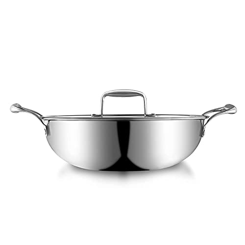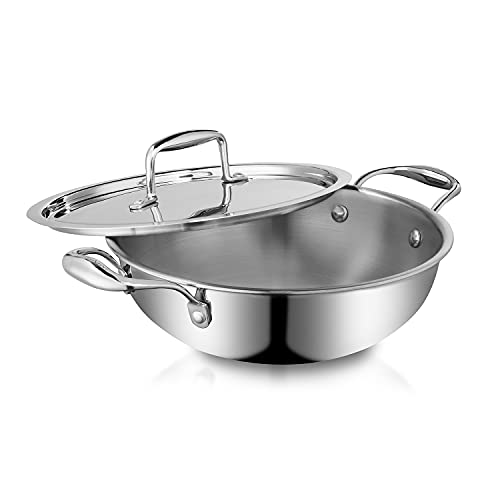 Anantaraa Triply Stainless Steel Kadhai / kadai with SS Lid and Riveted Handles - 28 cm 4.2 LTR (Induction Friendly)