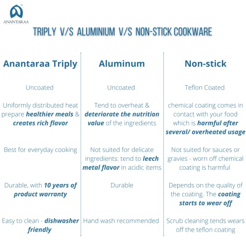 Anantaraa Triply Stainless Steel Kadhai / kadai with SS Lid and Riveted Handles - 28 cm 4.2 LTR (Ind