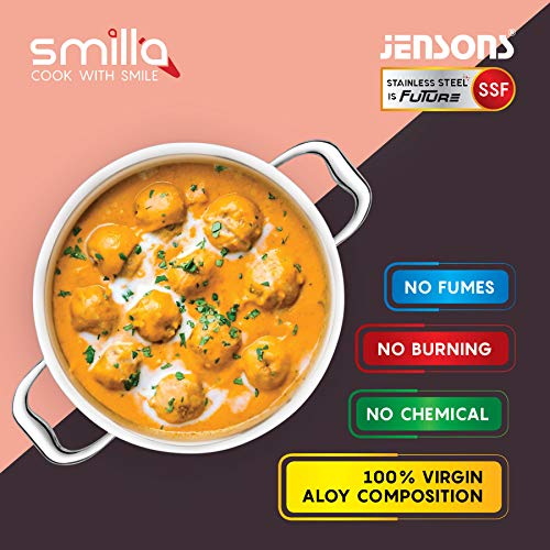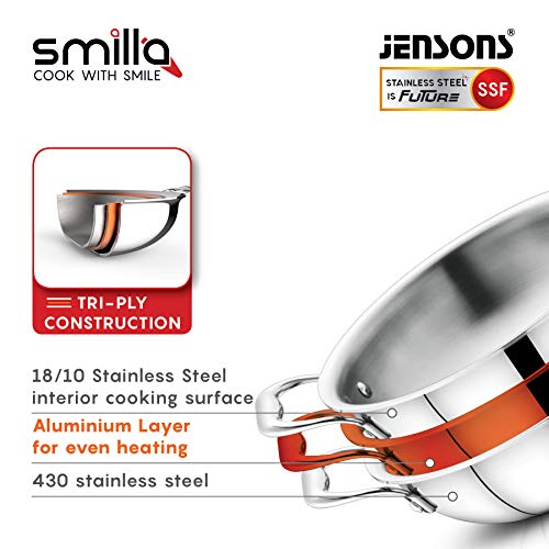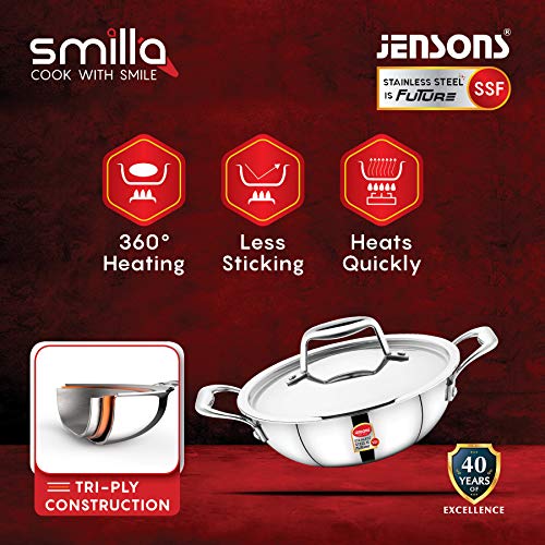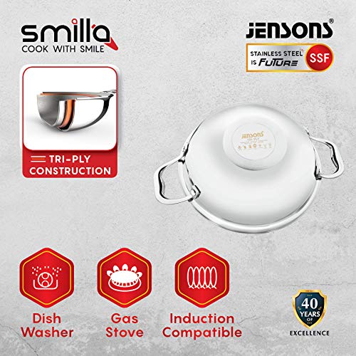 JENSONS Smilla Triply 18/10 Food Grade Stainless Steel Kadai with Stainless Steel Heavy LID-Induction Compatible-20 cm