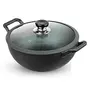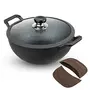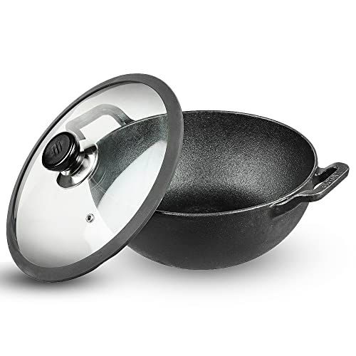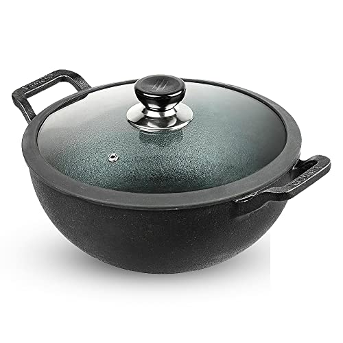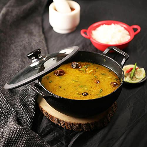 Indian kitchens have honed the cast iron cookware since times unknown. The cast iron cookware can be used on stove tops grills as well as in the oven which makes it possible to cook a large number of cuisines by using the same cookware. That means minimal space consumption and maximum utility which is just one of the benefits of investing in the cast iron kadai cast iron tawa or cast iron frypans. Vinod Legacy Cast Iron is Multi-Functional where you can Bake in it Fry in it BBQ in it. Perfect for delicious curries sauting frying searing roasting and getting that authentic harred flavour in your daily cooking. Package includes 1 Kadai and 1 Lid