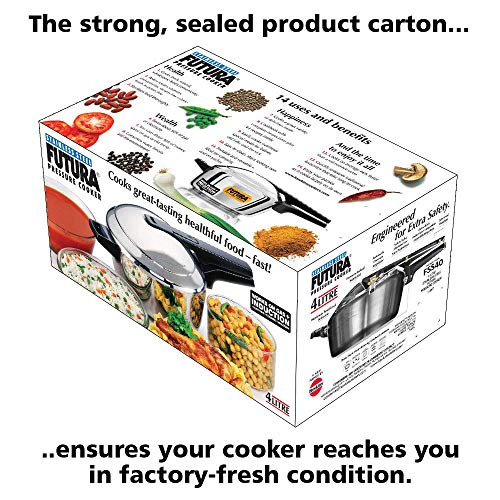 Each pressure cooker made by Hawkins features an inside fitting lid. This design is inherently safer than conventional pressure cookers. To open any Hawkins cooker, you have to first lower the lid slightly into the body of the cooker; and that cannot be done until the steam pressure inside the cooker falls to a safe level. Thus Hawkins pressure cookers are pressure-locked for safety - like a jetliner door!