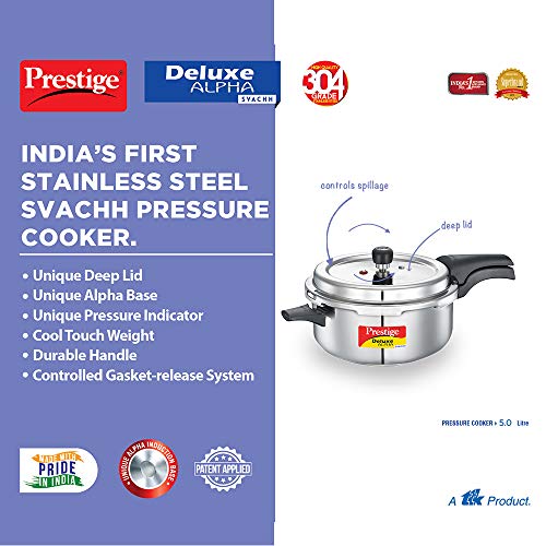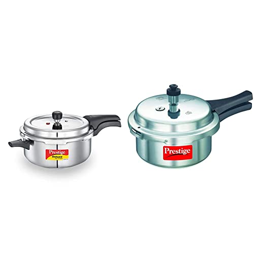 Prestige Svachh, 20255, 5 L, Deep Pressure Pan, with deep lid for Spillage Control + Prestige Popular Aluminium Pressure Cooker, 2 Litres, Silver