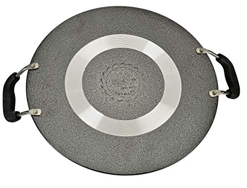 A perfect flat tawa without edge for making dosas and roti's. Low calorie cookware for good health. Internally reinforced 3 coats technology. Specially designed bottom for better heat efficiency. 3 coat nonstick metal spoon friendly long lasting coating. 100 percent non toxic. Scratch resistant coating.