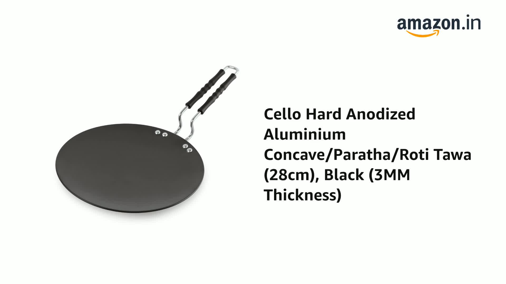 Cello Hard Anodized Aluminium Concave/Paratha/Roti Tawa (Black, 28cm, 3mm Thickness)