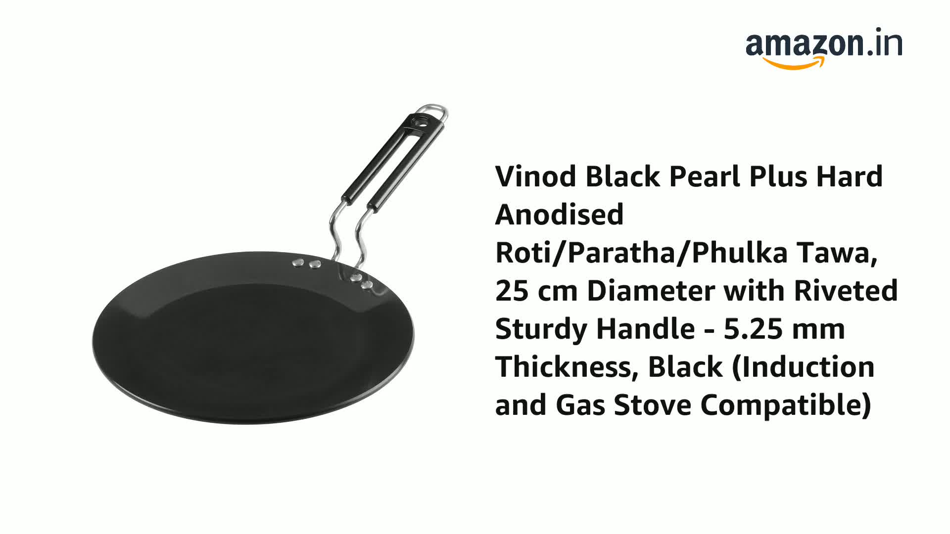 Size:25cmBring home this tawa and enhance your cookware collection. Crafted from hard anodised material it lasts long and is induction friendly. It also comes with a strong handle that makes it easy to use. Moreover the non stick coating makes it more utilitarian. Dimensions: 26 x 8 cms.