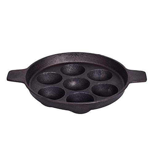 Highkind Cast Iron Paniyaram Tawa Pre Seasoned Appam Pan Premium Cast Iron Paniyaram/Appe/Paddu/Ponganalu Pan (7 Cavity)