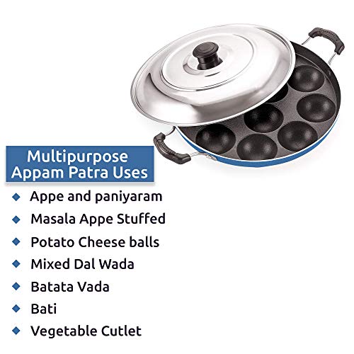 The appam maker has premium non-stick coating and ergonomic sturdy bakelite handles which allows for smooth handling and easy cleaning. The outer Hammertone coating helps keep the vessel scratch-free and tamper proof. With the stainless steel lid this cookware can also be used to serve food. Designed with great precision the stainless steel lid has increased strength and toughness. With the stainless steel lid this cookware can also be used to serve food. Designed with great precision the stainless steel lid has increased strength and toughness.With the stainless steel lid this cookware can also be used to serve food. Designed with great precision the stainless steel lid has increased strength and toughness.