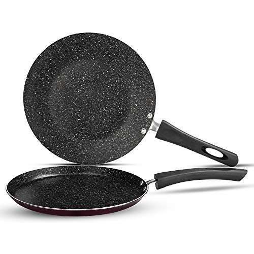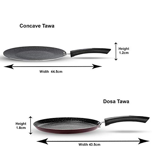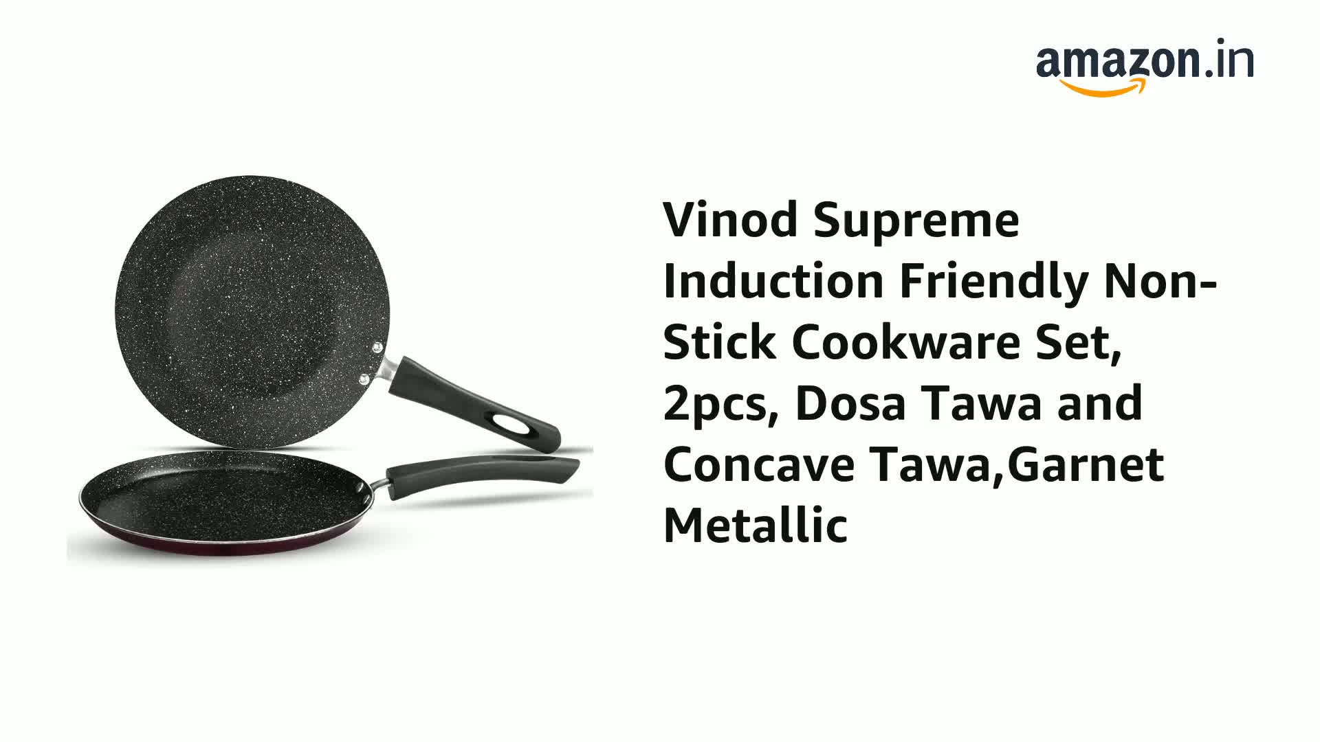 Vinod Supreme Induction Friendly Non-Stick Cookware Set 2pcs Dosa Tawa and Concave TawaGarnet Metallic