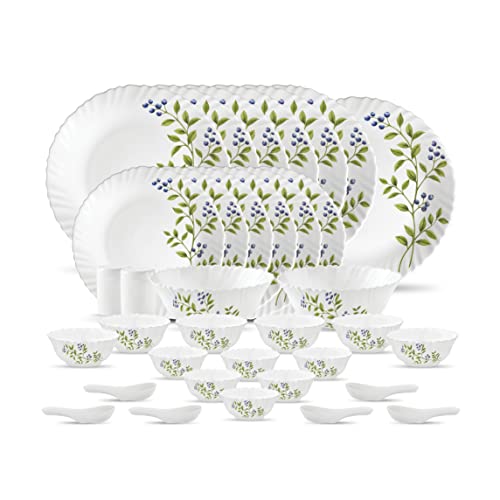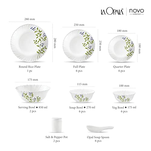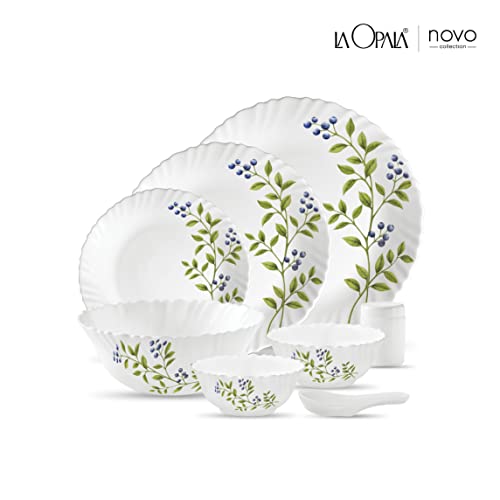 La Opala Novo Collection Opal Glass Dinner Set 35 pcs Lush Greens White