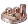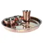 • Material = Steel Copper | Thali Weight=850 gm Diameter=11"inch | Bowl Diameter=3.5"inch Weight=150 gm Length=2.8" Capacity=100 ml | Glass Length=3.5" BREADTH=3.2" Capacity =250 ml