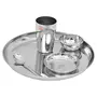 Vinod presents this silver color dinner set. It is made of stainless steel. This package contains 1 plate 1 bowl 1 small plate 1 glass and 1 spoon. It has seller warranty up to 10 years and the replacement warranty is available against manufacturing defects only.